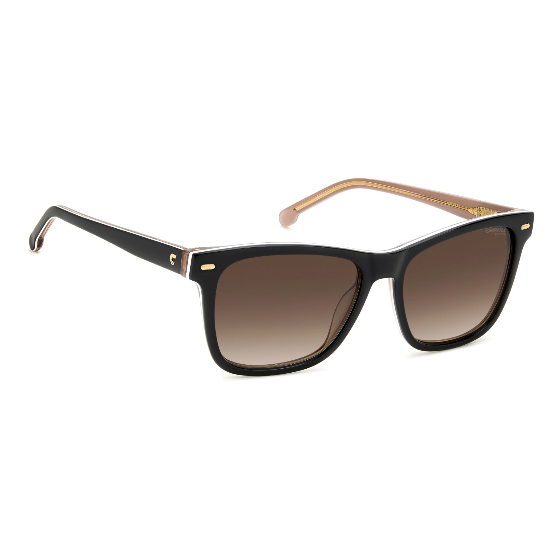 Make way for femininity. Quintessential elements from the world of Carrera stand out on these women’s sunglasses. The acetate structure is trimmed by an embossed Carrera ‘C’ on the temples and metal rivets on the front. The colour palette adds to their personality: these glasses come in transparent, multi-layer and colourful Havana options. The ability to fit them with prescription sun lenses makes them truly customizable.