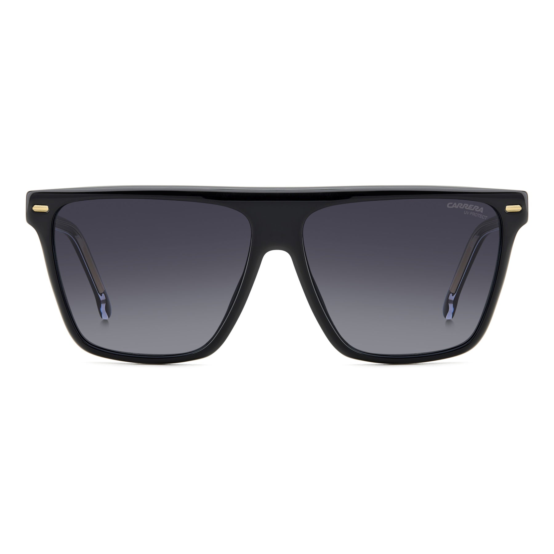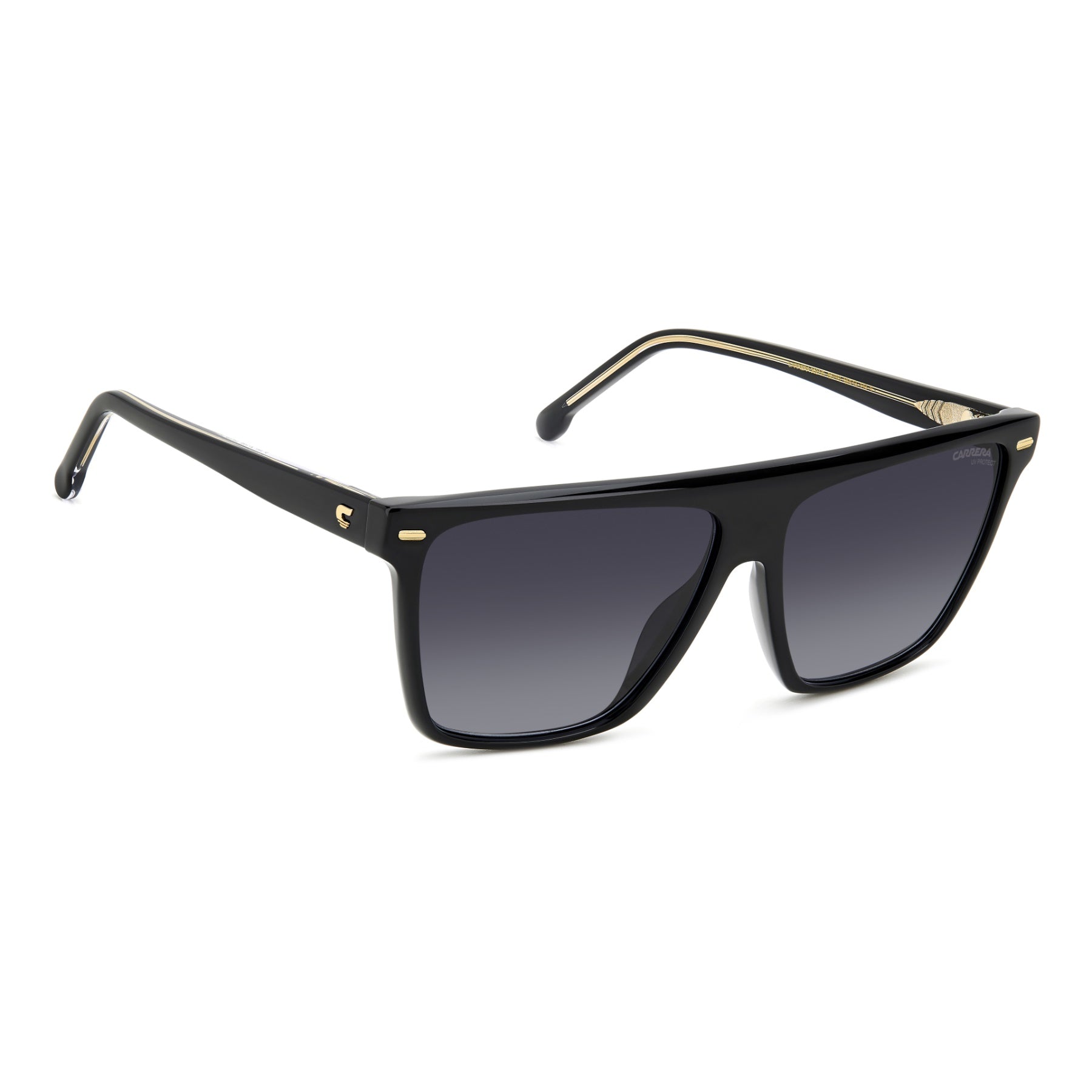 Sunglasses for women with the flat topline that Carrera is known for. A fresh take on the iconic style of the brand, these glasses are dedicated to bold fashionistas. Made of acetate, they're trimmed by golden rivets and an embossed logo-jewel on the temples. They’re a pleasure to wear thanks to the slender, lightweight frames and the option to fit them with prescription sun lenses. They also come in a version with mirrored lenses.