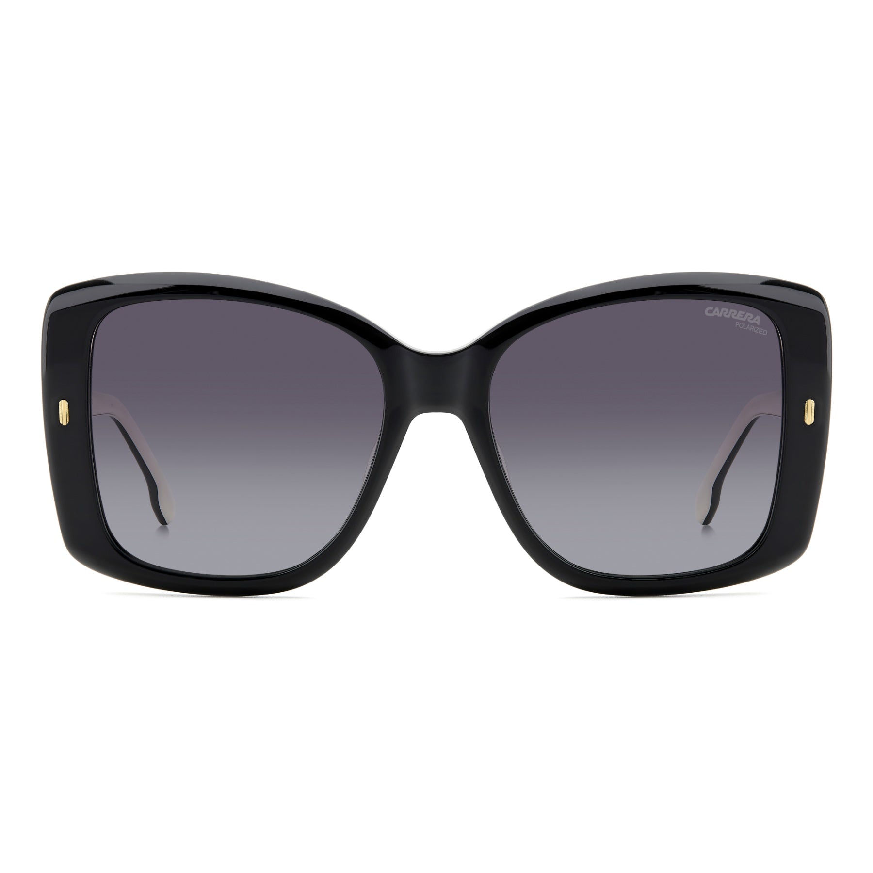 More than simple sunglasses, this Carrera look is a personal style statement. The butterfly shape is sophisticated, characterised by bold proportions that are in-line with the latest trends. The acetate structure is brightened by metal inserts, such as the rivets on the front and the embossed ‘C’ on the temples. These frames can be fitted with prescription lenses, and some versions come with polarized lenses.