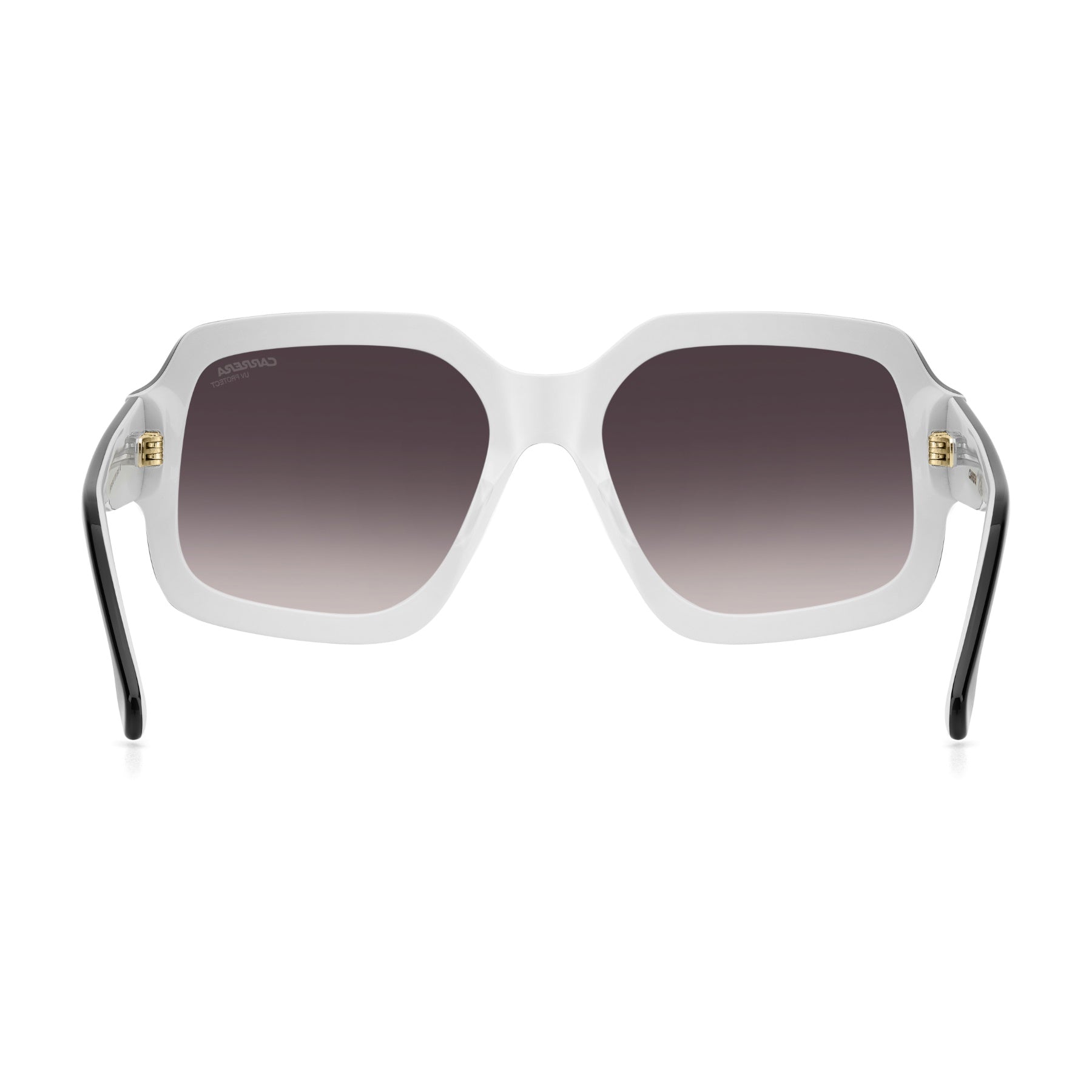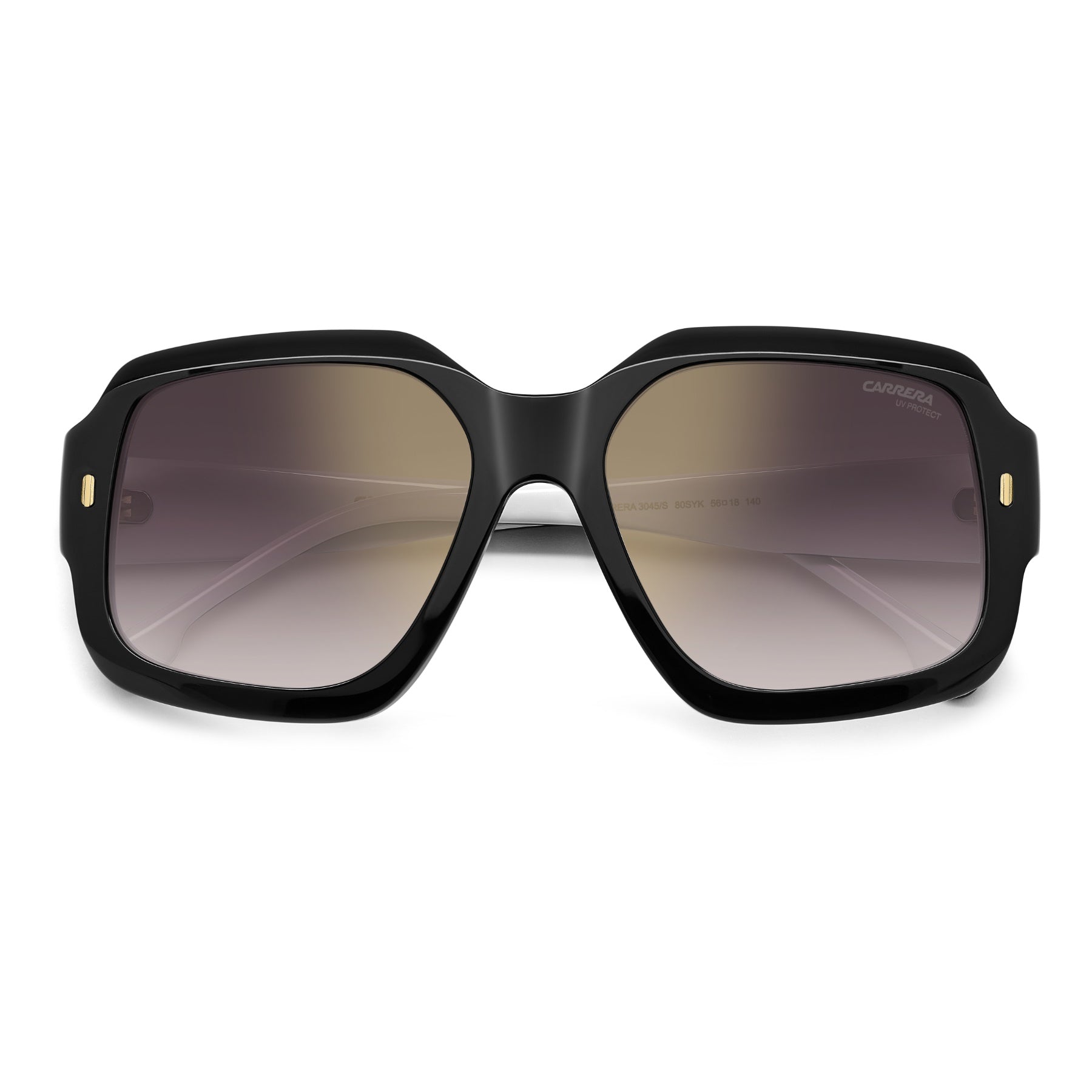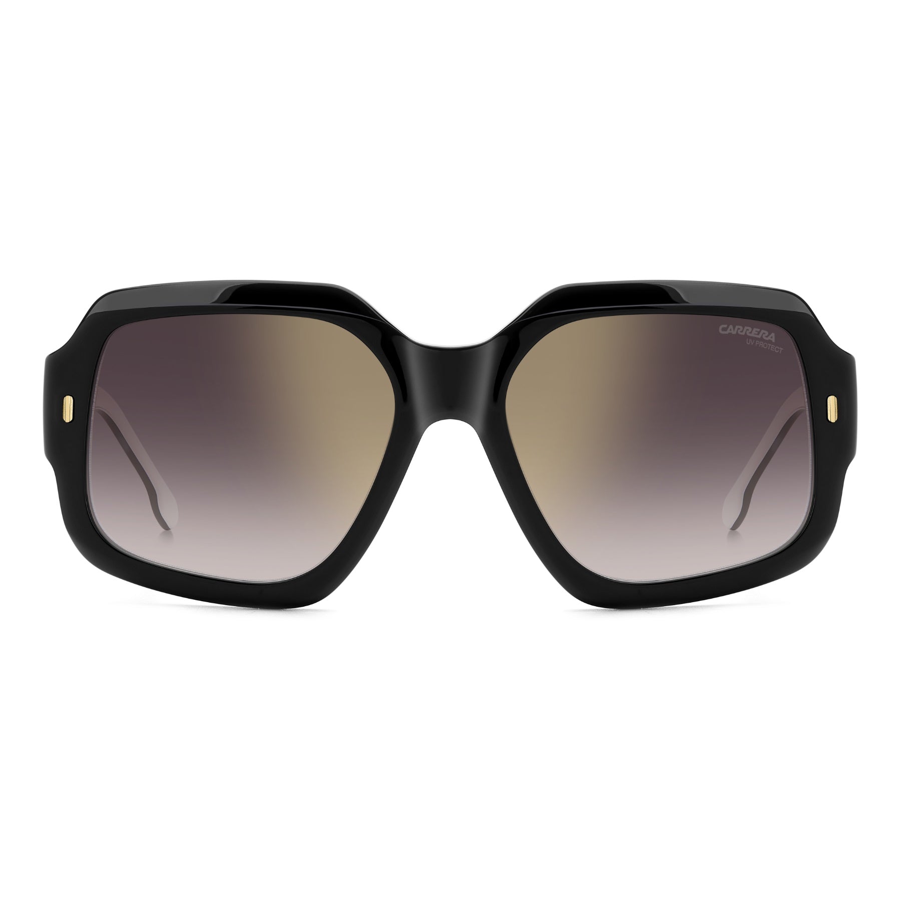 An interplay of shapes and proportions defines these women’s Carrera sunglasses: square, decisive and truly noteworthy. The shape of the front is unique, holding gradient or mirrored lenses, with the option to fit them with prescription lenses. The acetate structure is embellished by metal details: front rivets inspired by the Carrera flag and the Carrera ‘C’ on the temples. A neutral colour palette completes their distinctive aesthetic.