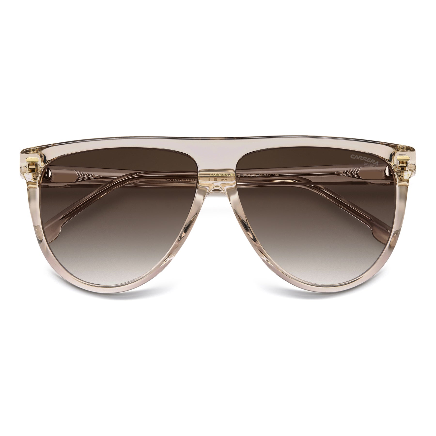 These Carrera women's sunglasses take a classic look and give it a Carrera twist. Flat along the top, one version has a contrast insert to accentuate the silhouette. The metal rivets add a bit of shine, and the embossed 'C' on the temples is instantly recognizable. The gradient aviator lenses come in polarized versions.