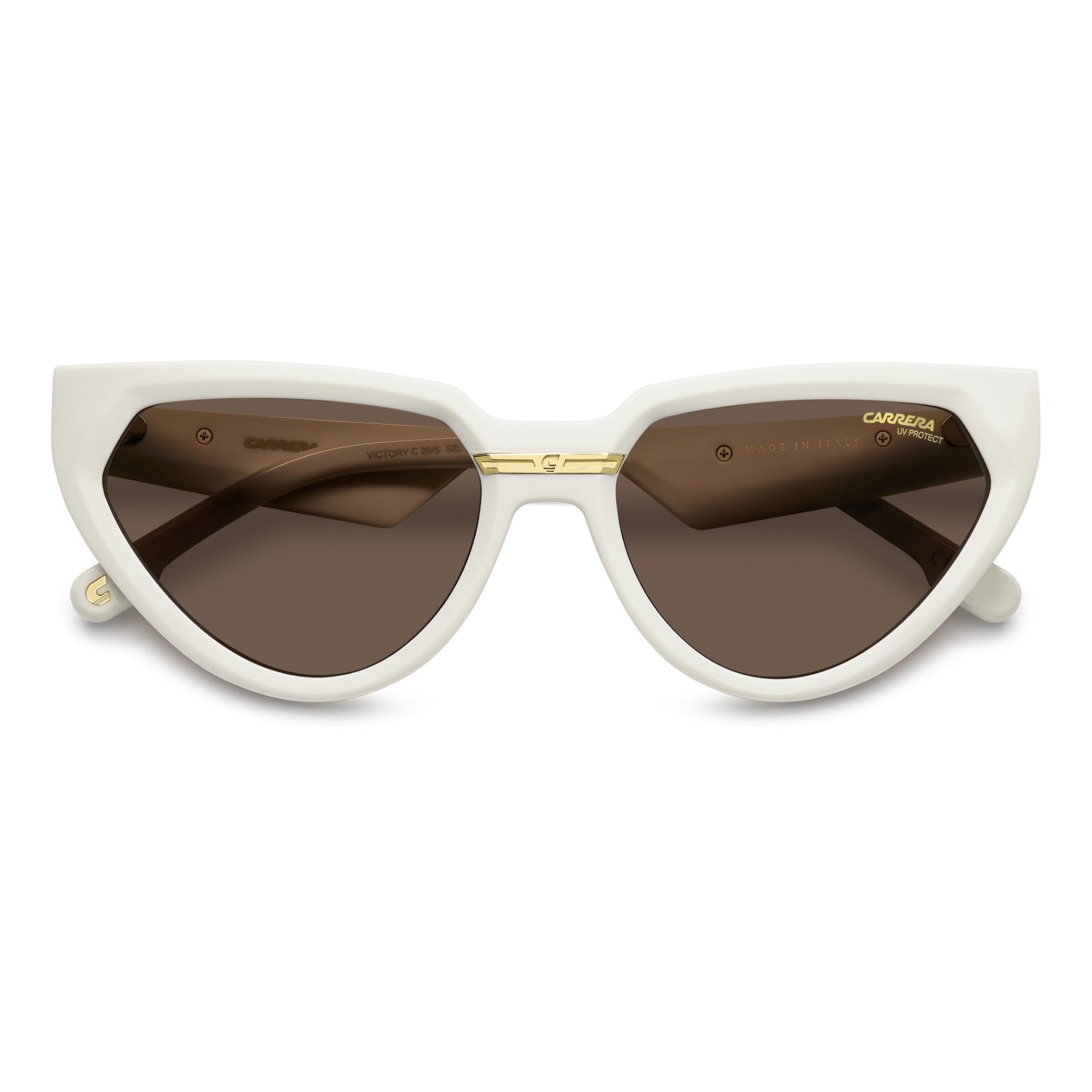 These women's Carrera frames feature a modern cat-eye front. The temples have a chunky, oversized design, new for this season. The metal plaque with the brand’s C indicates the Victory C family, adding an iconic touch. Available in various colours and options with mirrored lenses.