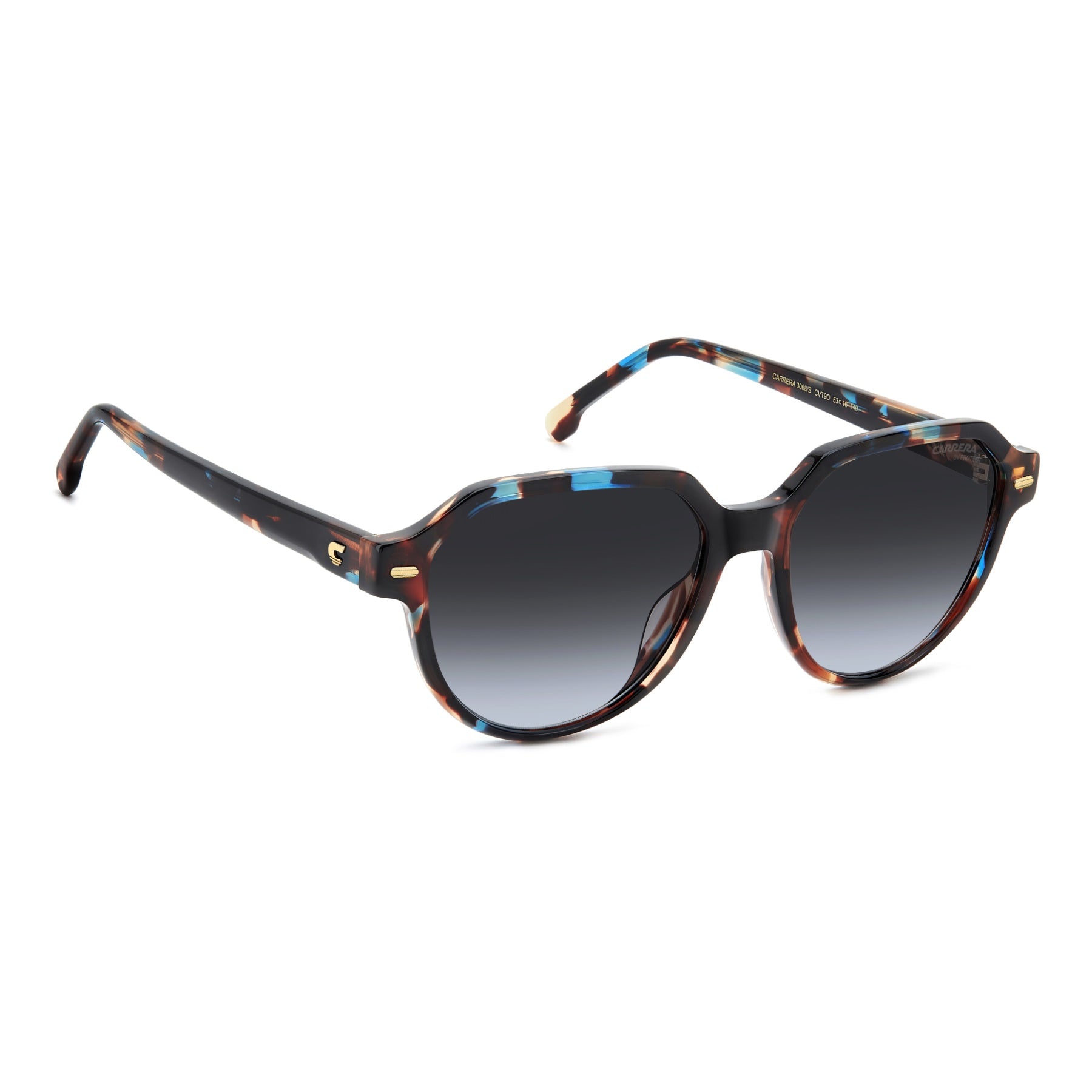 These Carrera sunglasses own every look—bold and practical. The acetate pantos front is crafted to conquer every face shape. The frame is enriched by metal rivets on the front and the embossed C on the temples. Available in classic neutrals, bright havana and a version with a colourful insert along the top.