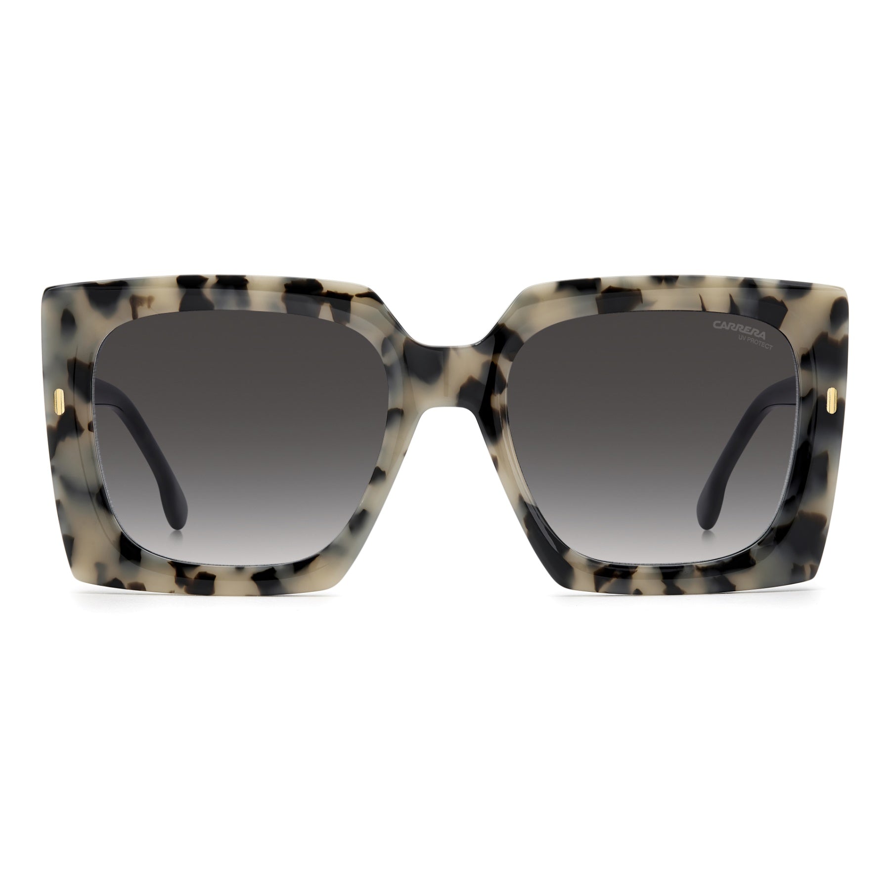These sunglasses express unmistakable personality with bold sophistication and individual character. The oversized butterfly front has clean lines with vertical rivets for extra edge. The embossed C on the temples adds authentic Carrera DNA. Whether transparent or havana, both elevate your style with unmistakable Carrera character.