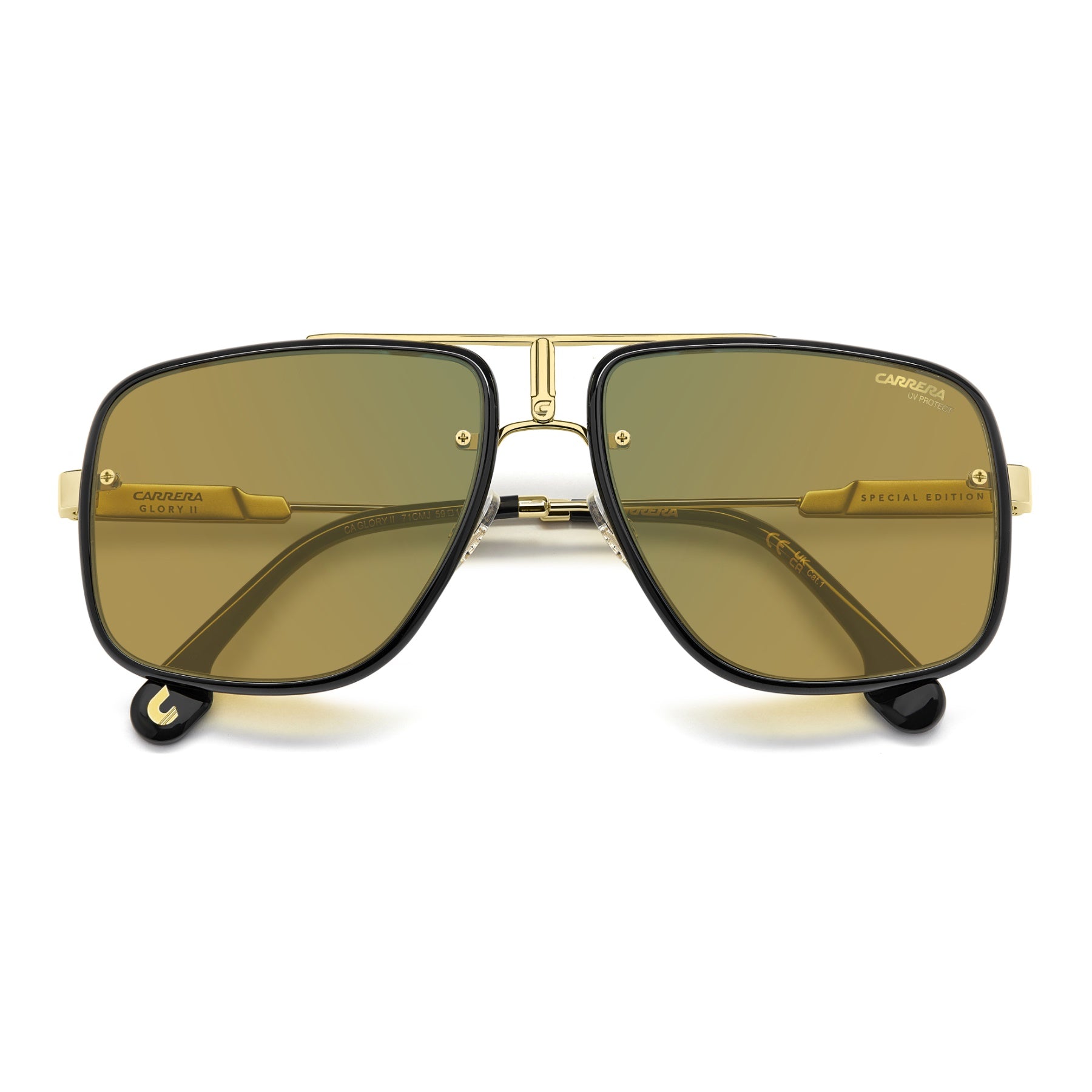 Carrera ist immer einen Schritt voraus und präsentiert diese Avitorsonnenbrille - die neueste Art, um sich von der Masse abzuheben. Die leichten Vollrand-Metallrahmen verfügen über einen markanten Doppelnasensteg mit luxuriöser Lederbesatz und dem ikonischem „C“ im Flachrelief. Das Logo Lettering der Marke rundet das Ganze ab.