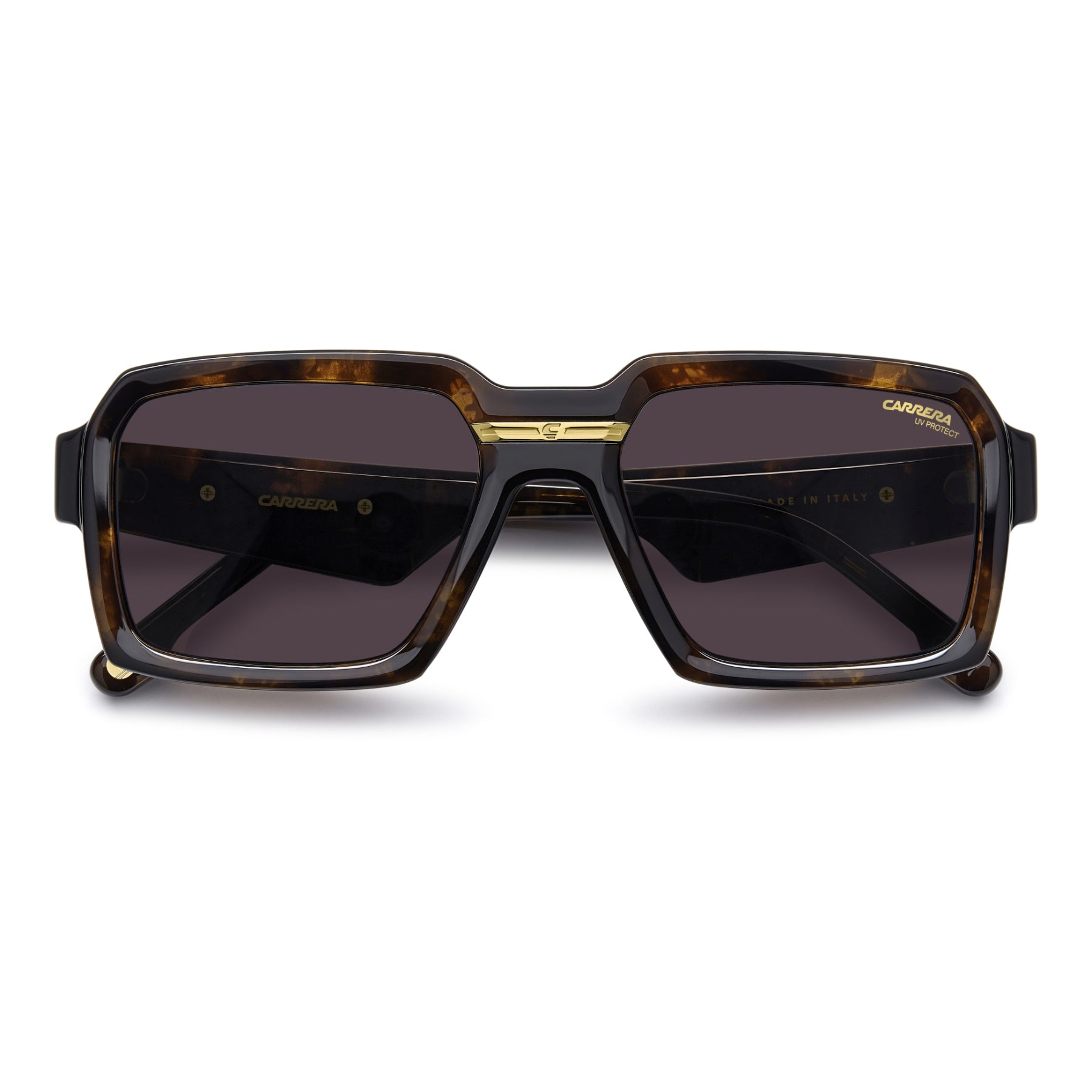 Diese in Italien gefertigte Sonnenbrille von Carrera zeichnet sich durch ihren schlichten Stil und ikonische Details aus. Mit der geometrischen Front greift die Marke aktuelle Trends auf, und die markanten Bügel setzen ein Statement mit Oversize-Appeal. Es sind mehrere Farben erhältlich, darunter auch durchsichtige Gestelle. Zudem stehen gespiegelte oder photochrome Gläser zur Auswahl. Jedes Modell ist mit dem klassischen Metalleinsatz von Carrera ausgestattet.
