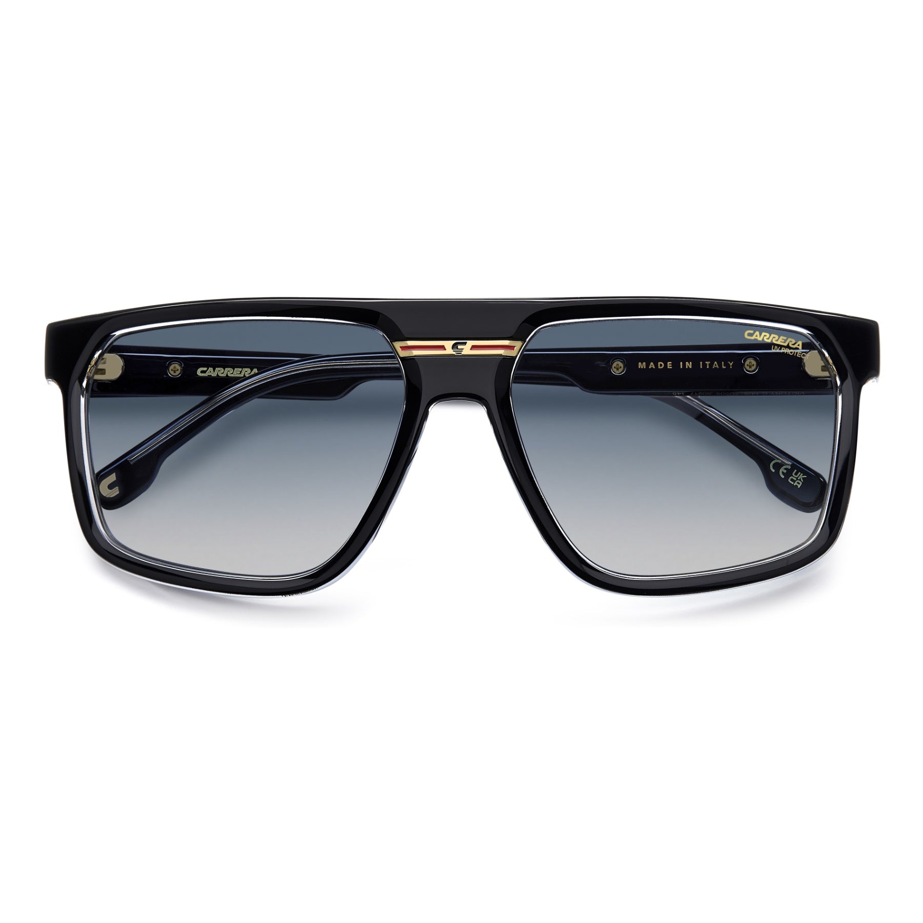 Mit dieser Sonnenbrille bringt Carrera seinen unverwechselbaren Stil zum Ausdruck. Made-in-Italy-Qualität mit ikonischen Details und präziser Handwerkskunst. Die entscheidende Front zeichnet sich durch ein markantes Design mit abgeflachtem oberen Rand und einem gravierten Metalleinsatz in der Mitte aus. Ausdrucksstark, ohne sich in den Vordergrund zu drängen. Es stehen verspiegelte Gläser oder photochrome Gläser zur Auswahl, die eine besondere Ausstrahlung bieten.