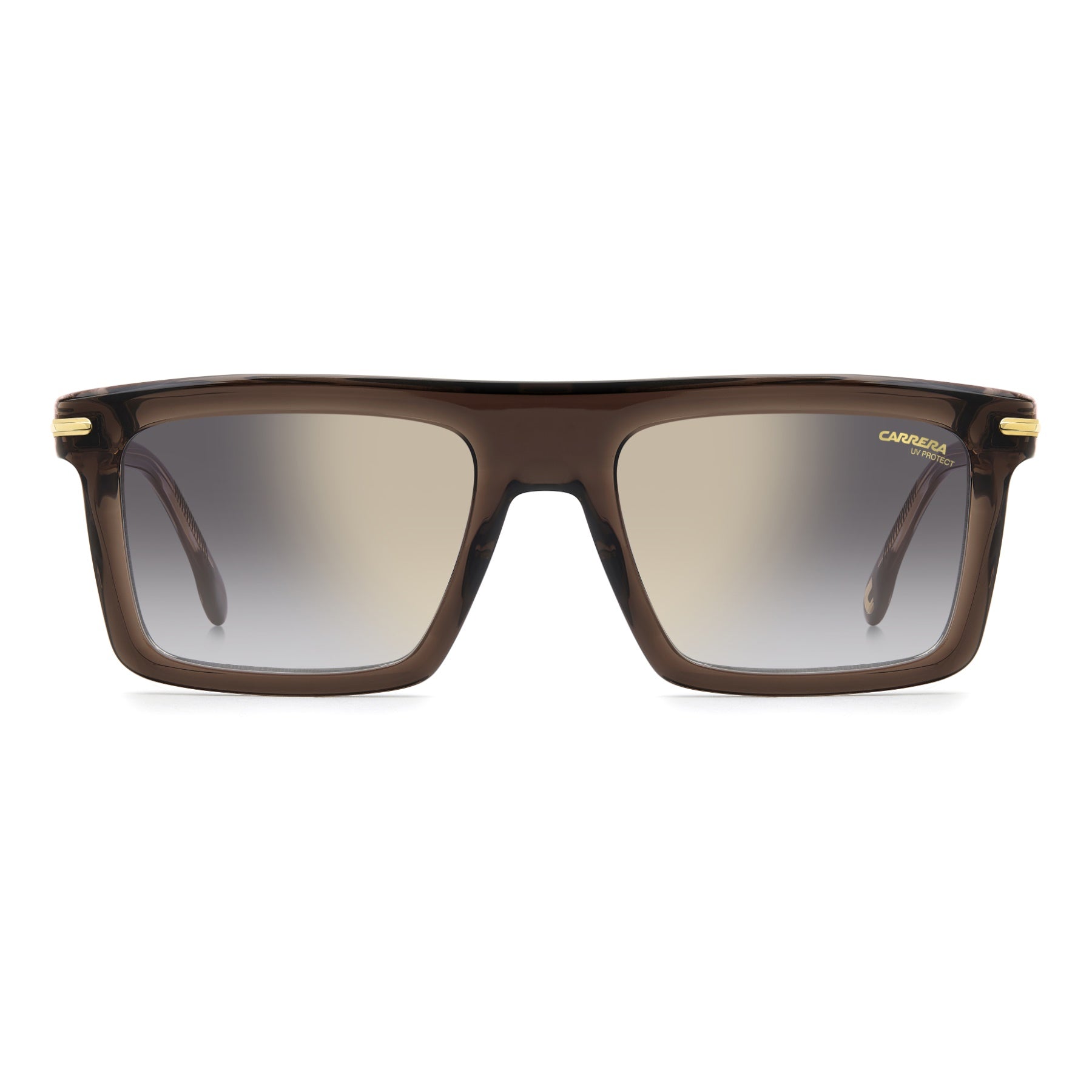 Diese Sonnenbrille von Carrera bietet einen unvergesslichen Stil. Die rechteckige Front verfügt über eine markante, flache Oberkante, die einen eigenen Akzent setzt. Das Gestell ist dünn und leicht, bietet aber trotzdem viel Charakter. Es stehen blaue Verlaufsgläser oder photochrome Gläser zur Auswahl, die sich dem wechselnden Licht anpassen.