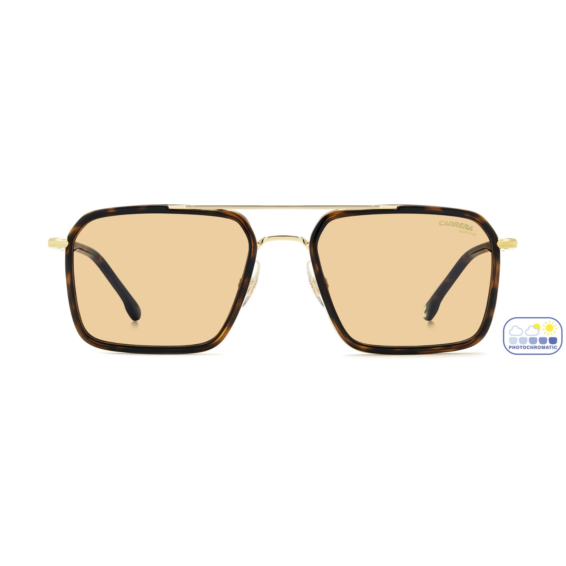 Diese Sonnenbrille von Carrera verbindet eine traditionelle Form mit einer modernen Ästhetik. Das Gestell aus Edelstahl bietet mit Acetatprofilen an der Front und an den Bügeln zu einem faszinierenden Materialmix, der ein ausgewogenes Verhältnis zwischen den wesentlichen Elementen der Brille schafft. Dieses Modell ist mit flexiblen Scharnieren und verstellbaren Nasenpads ausgestattet. Zur Auswahl stehen Verlaufsgläser, verspiegelte Gläser, ultrapolare Gläser und photochrome Gläser.