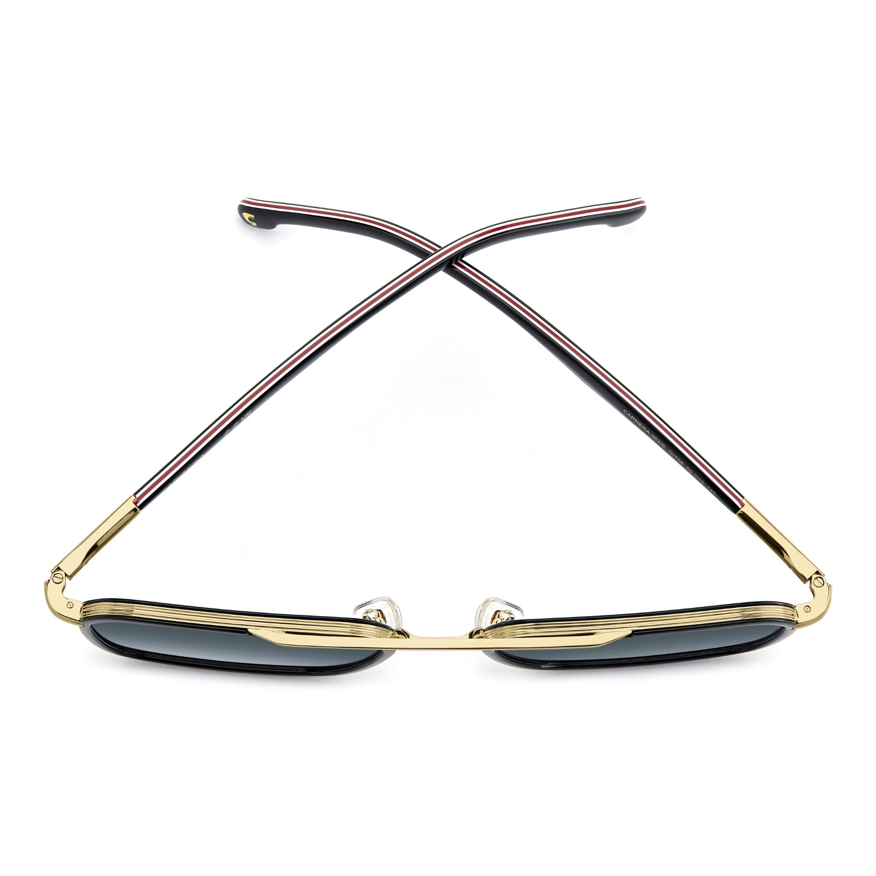 Diese Sonnenbrille von Carrera verbindet eine traditionelle Form mit einer modernen Ästhetik. Das Gestell aus Edelstahl bietet mit Acetatprofilen an der Front und an den Bügeln zu einem faszinierenden Materialmix, der ein ausgewogenes Verhältnis zwischen den wesentlichen Elementen der Brille schafft. Dieses Modell ist mit flexiblen Scharnieren und verstellbaren Nasenpads ausgestattet. Zur Auswahl stehen Verlaufsgläser, verspiegelte Gläser, ultrapolare Gläser und photochrome Gläser.