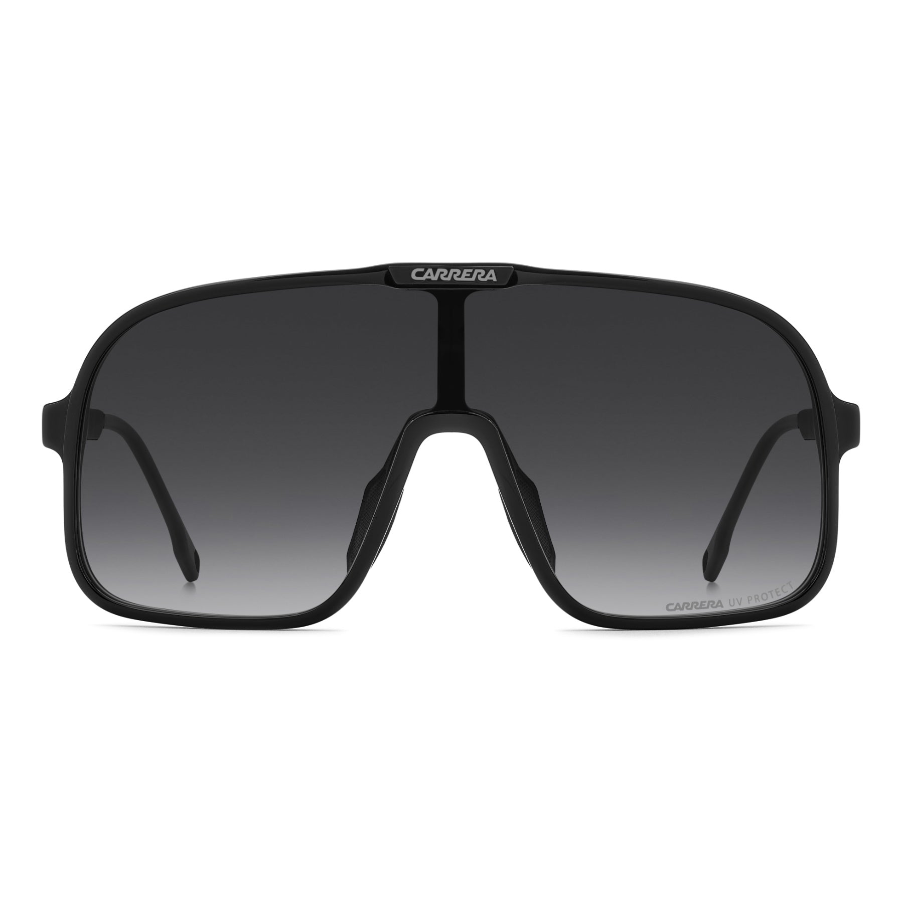 Diese Sonnenbrille verleiht den archivierten Designs von Carrera einen frischen Touch. Die Pilotenfront mit Maxi-Gläsern aus Acetat zeugt vom sportlichen Erbe, das durch mehrschichtige Details noch ikonischer wird. Gummierte Nasenpads und verstellbare, gebogene Bügelenden sorgen für einen sicheren Sitz. Die Farbpalette umfasst eine Version mit blauen Verlaufsgläsern – unverkennbar Carrera.