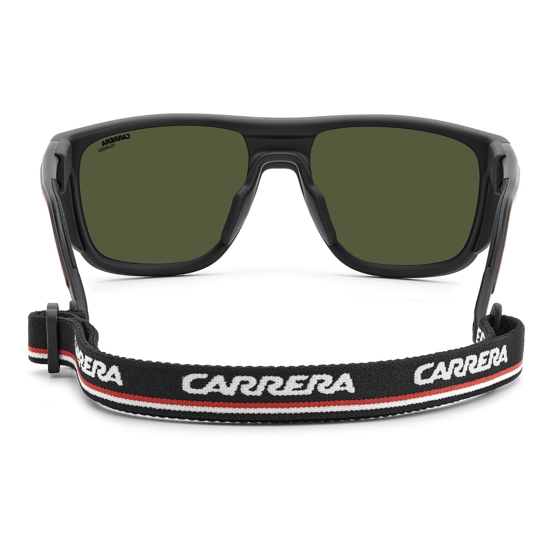 Diese Sonnenbrille von Carrera ist vom Outdoor-Sport inspiriert und erreicht ihren Höhepunkt mit der markanten Extreme-Version. Die vollflächige Front bietet seitliche magnetische Spoiler, die vor Licht und Wind schützen. Das mitgelieferte Band aus Gummi lässt sich an den Bügelenden befestigen und ermöglicht so ein sicheres Tragen bei allen Aktivitäten. Sowohl das Band als auch die Spoiler können für den Alltagsgebrauch schnell abgenommen werden und sind auch mit dem Modell C SPORT 08 kompatibel. Zur Auswahl stehen polarisierte Gläser oder Gläser mit hohem Kontrast.