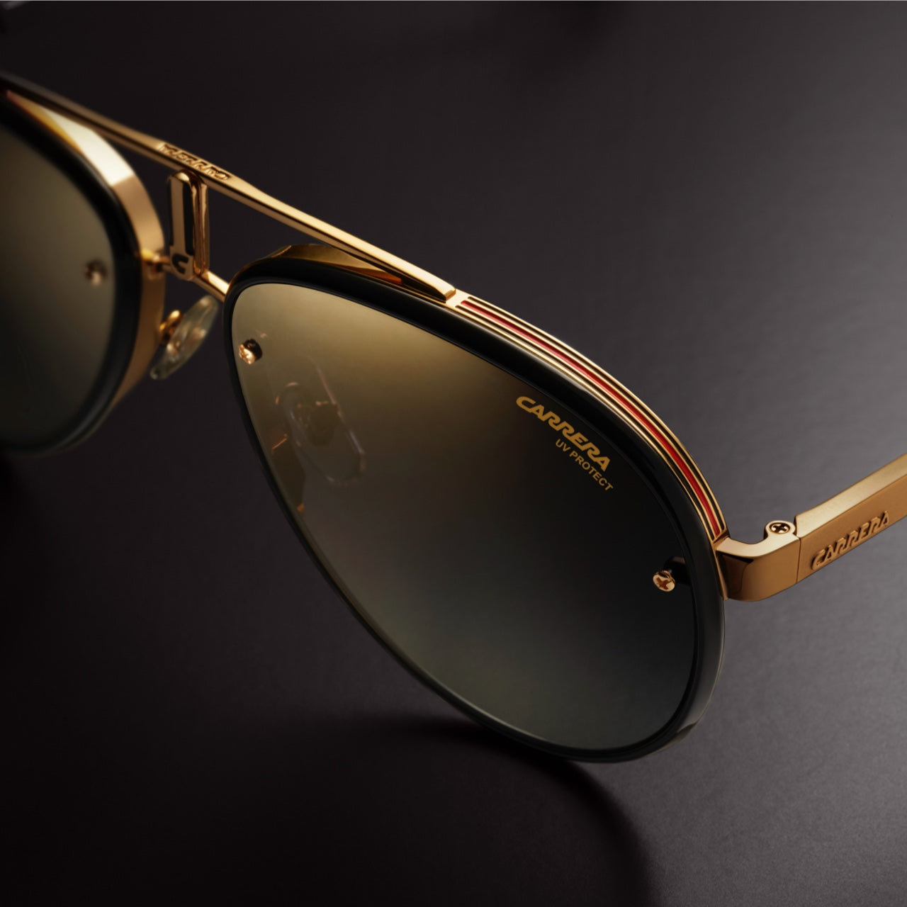 Carrera's most iconic design since 1987: the Champion, reimagined the classic teardrop shape with bold volumes and distinctive details, adored by celebrities worldwide for its ability to stand out.