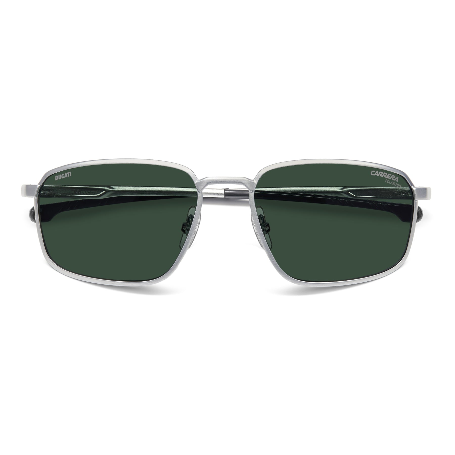 Las gafas de sol de Carrera | Ducati son las estrellas en el circuito y en las gradas. Con perfiles finos sumamente versátiles y una silueta rectangular, este modelo queda bien con outfits casuales o se puede llevar con conjuntos formales buscando un look más osado. Las varillas son de aluminio, un material de altas prestaciones de primera elección, cuando se utiliza en las gafas deportivas. Las almohadillas ajustables aumentan adicionalmente el nivel de confort, al igual que las bisagras flexibles y la opción de poder llevar lentes solares de corrección. Estas gafas están disponibles en versiones con lentes polarizadas o ultrapolares.