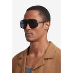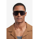El espíritu competitivo de Carrera se transmite en estas gafas de sol unisex. El frente pantalla se remata con una barra superior metálica esbelta, completada con tornillos decorativos y orificios redondos. Las varillas metálicas presentan también aperturas redondas, retomando el diseño de los volantes de los coches clásicos, que corrieron en la Carrera Panamericana. Algunas versiones presentan lentes de espejo, incluida una variante en naranja, para un look vintage. Este accesorio de coleccionista va en su funda especial.