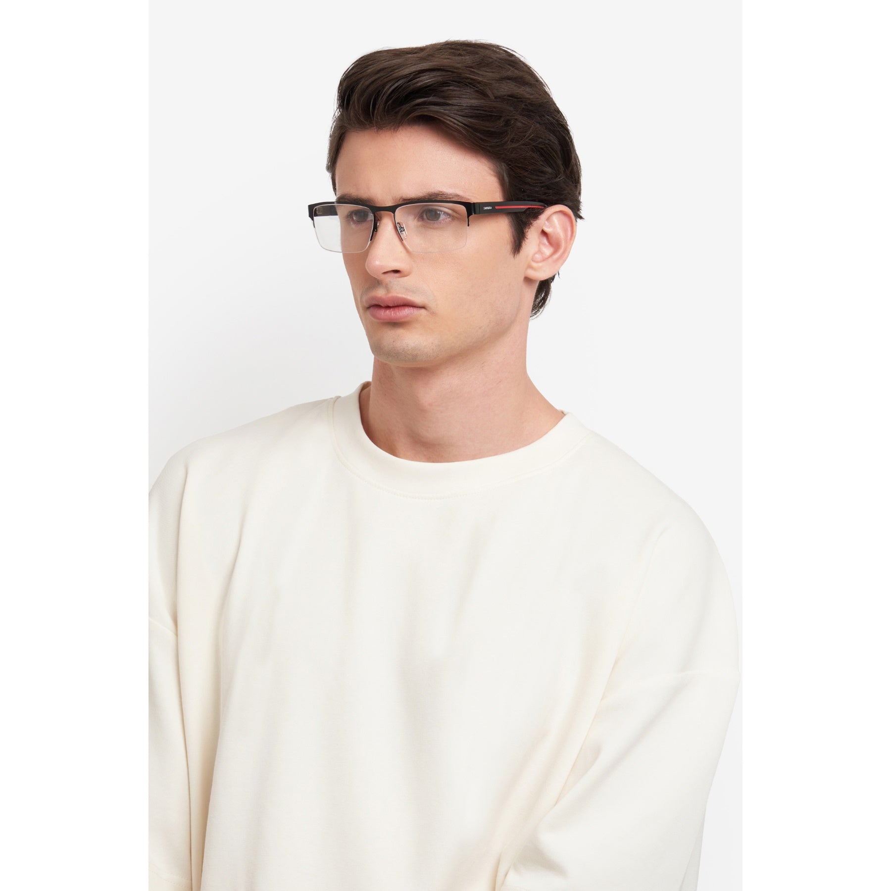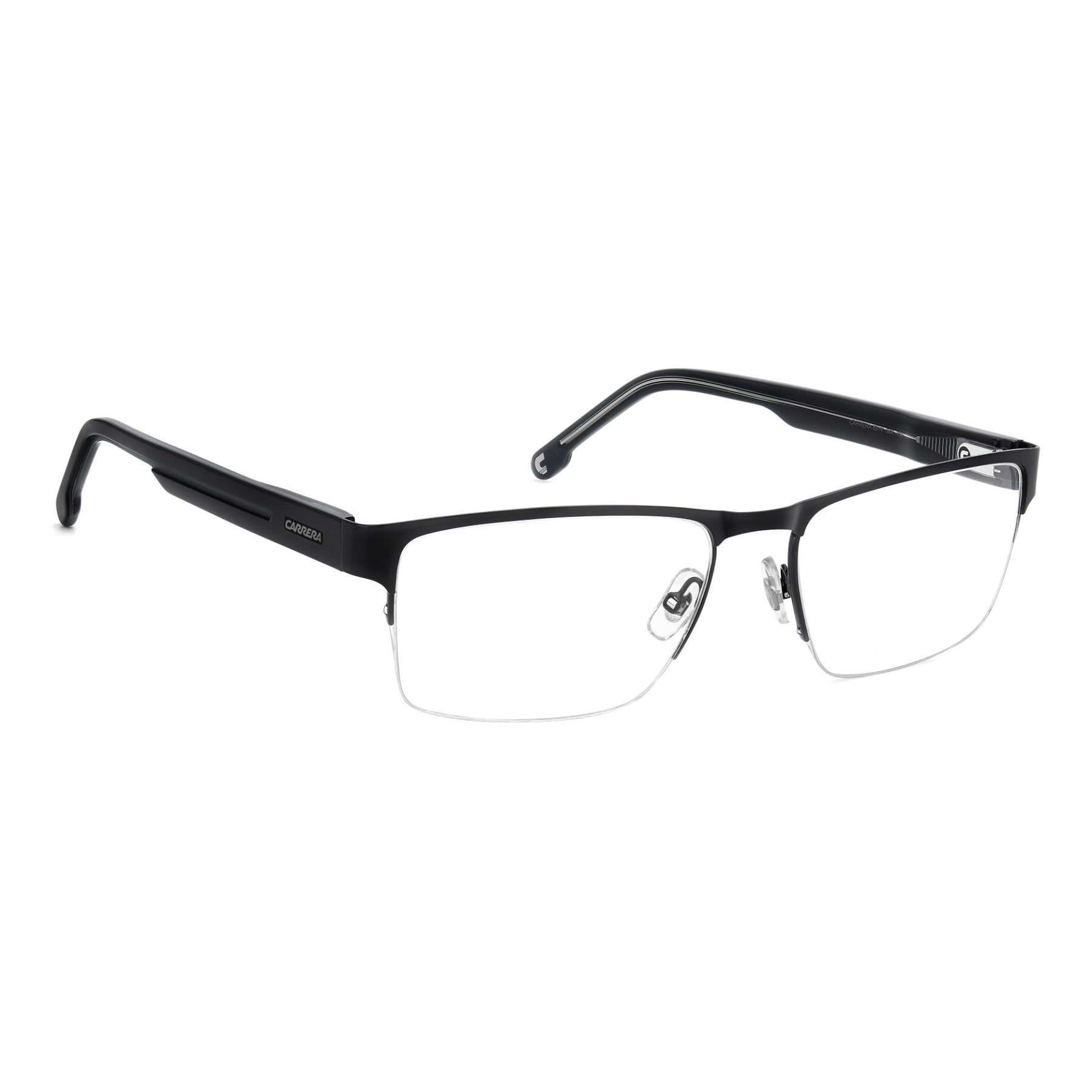 Carrera se toma muy en serio el confort y la versatilidad: el resultado es este par de gafas graduadas con semimonturas. Almohadillas ajustables, bisagras flexibles y la opción de elegir entre dos tamaños de lentes garantizan un ajuste personalizado. Las varillas en acetato diseñadas de reciente, esculpidas tomando como referencia la bandera de Carrera, definen este modelo. Los matices son tono sobre tono, azules o en la tonalidad quintaesencial de Carrera: el rojo.