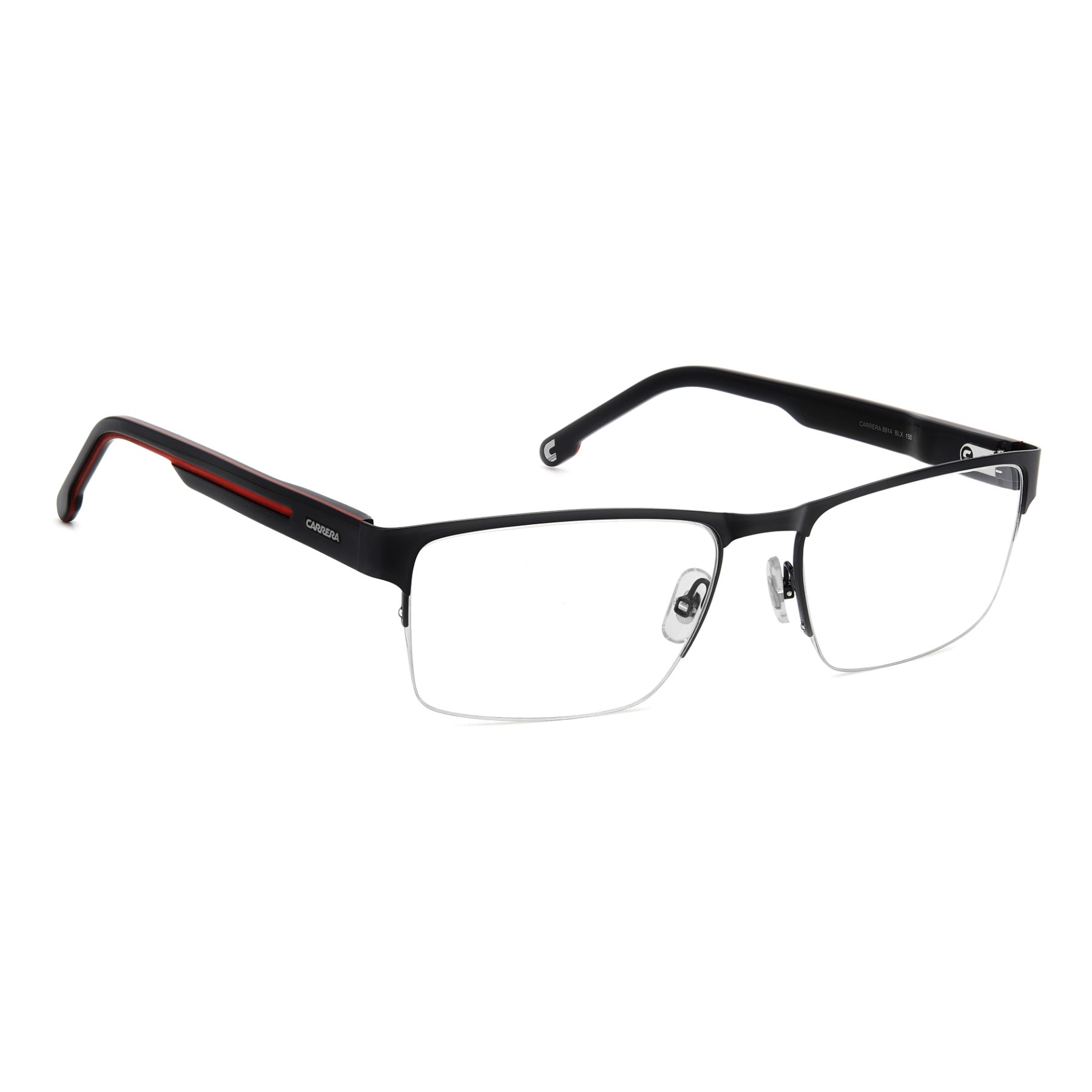 Carrera se toma muy en serio el confort y la versatilidad: el resultado es este par de gafas graduadas con semimonturas. Almohadillas ajustables, bisagras flexibles y la opción de elegir entre dos tamaños de lentes garantizan un ajuste personalizado. Las varillas en acetato diseñadas de reciente, esculpidas tomando como referencia la bandera de Carrera, definen este modelo. Los matices son tono sobre tono, azules o en la tonalidad quintaesencial de Carrera: el rojo.