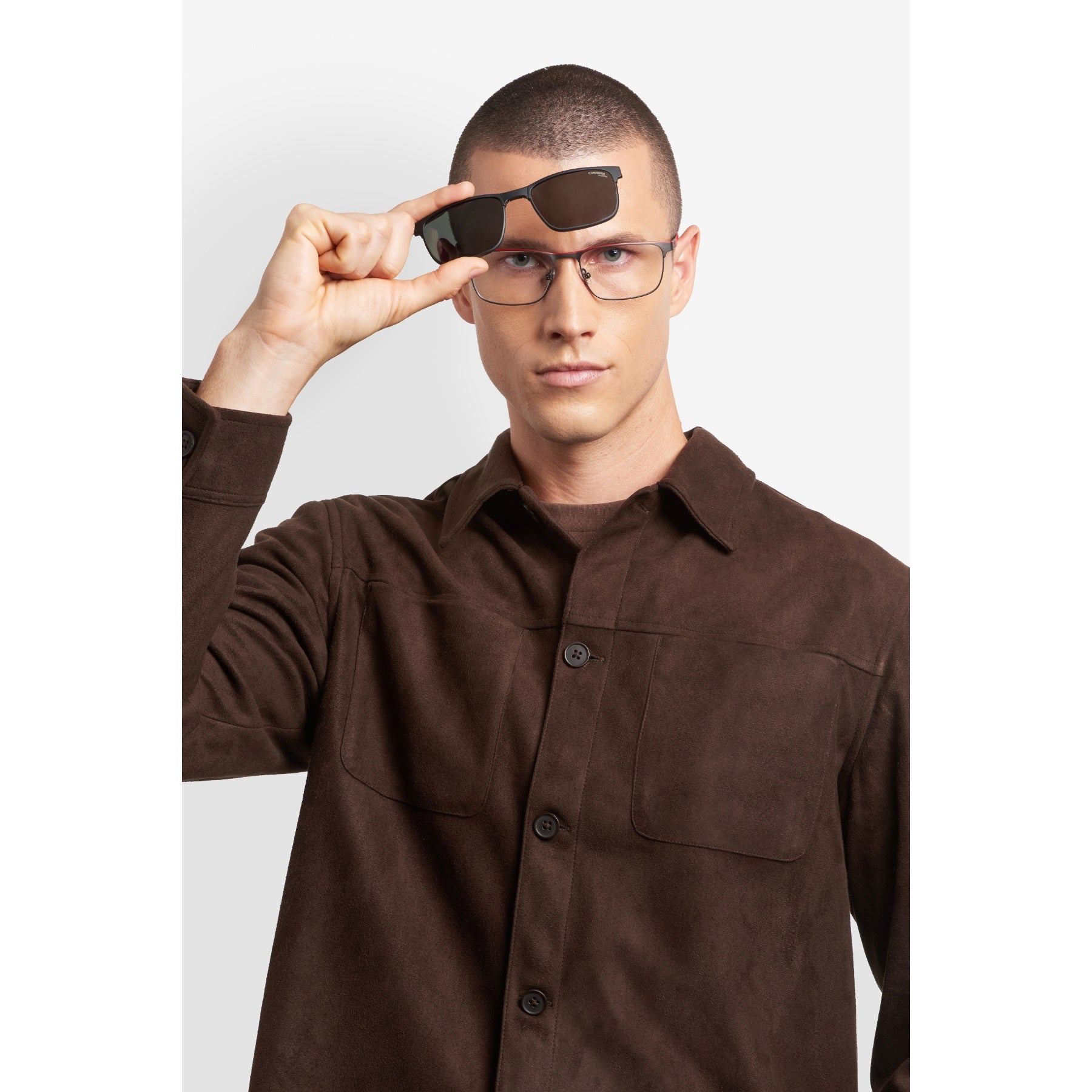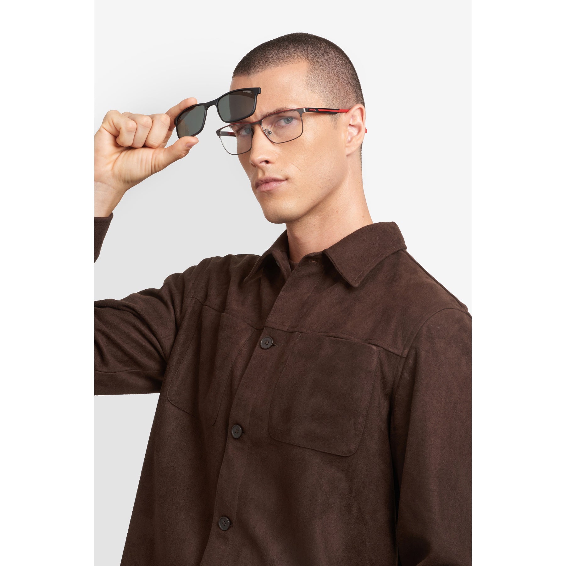Estas gafas graduadas de Carrera conjugan funcionalidad y estilo. El frente se ha realizado en acero inoxidable, y se proponen en una versión con un elemento en la parte superior de un color diferente. Los insertos de goma y el logotipo de Carrera de las varillas ponen un toque informal. Las lentes solares polarizadas del clip ofrecen la máxima libertad. Se pliegan fácilmente y colocan con un simple clic.