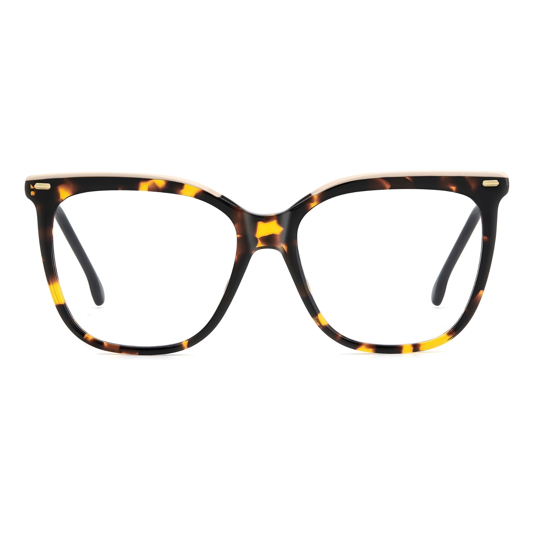 Carrera promete elevar tu estilo con estas gafas graduadas de mujer. Su peculiaridad reside en los materiales yuxtapuestos: acetato para el frente y metal en las varillas. Los remaches biselados infunden luz a la montura cuadrada clásica. Se tiñen de colores para todos los gustos y estilos, pero la versión con el adorno en acetato inyectado bicolor en la parte superior pone la nota fresca de temporada.