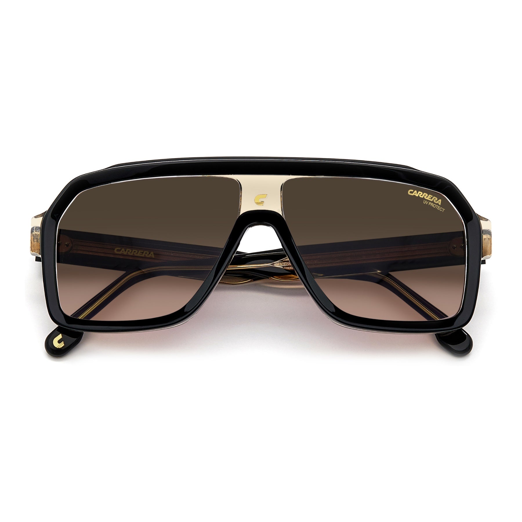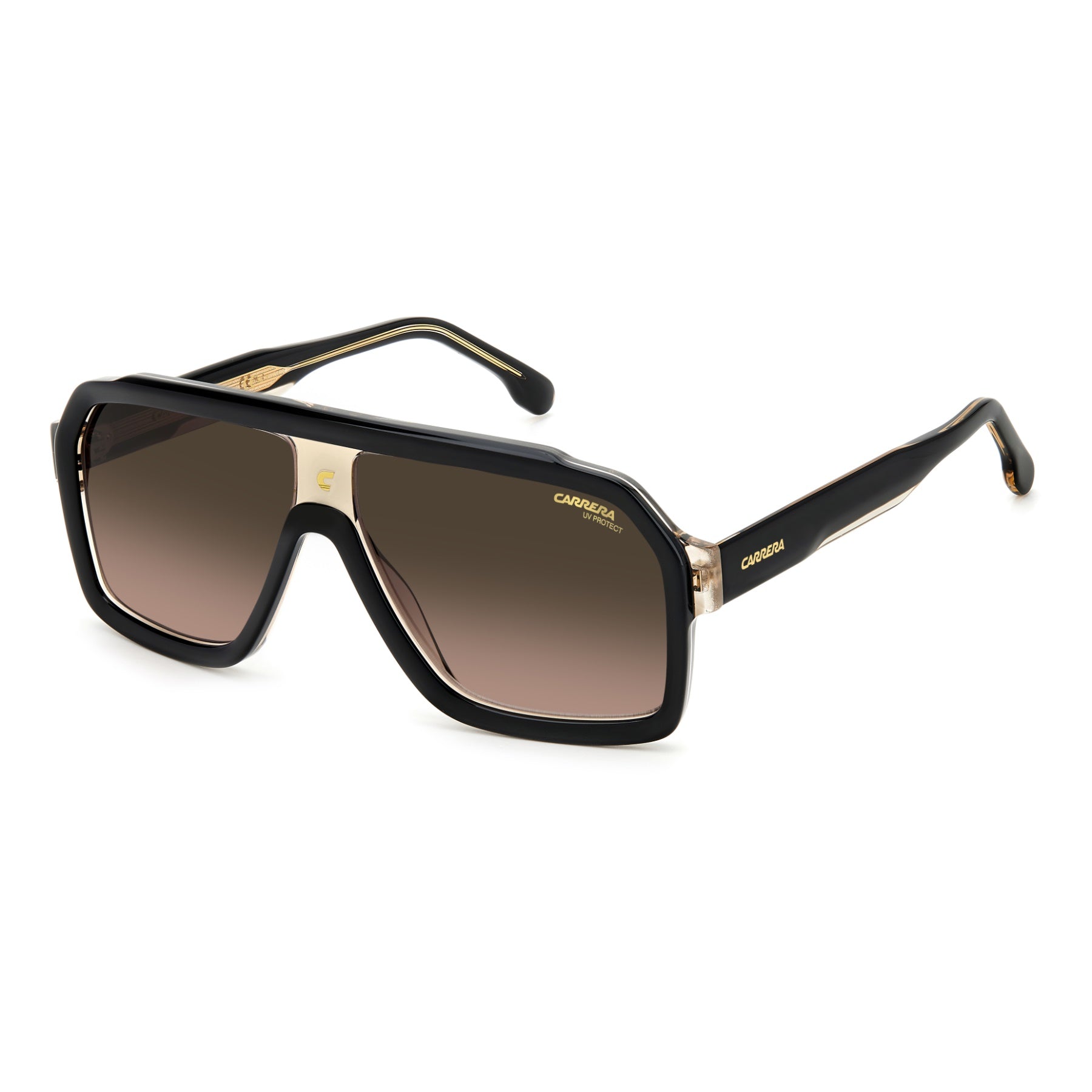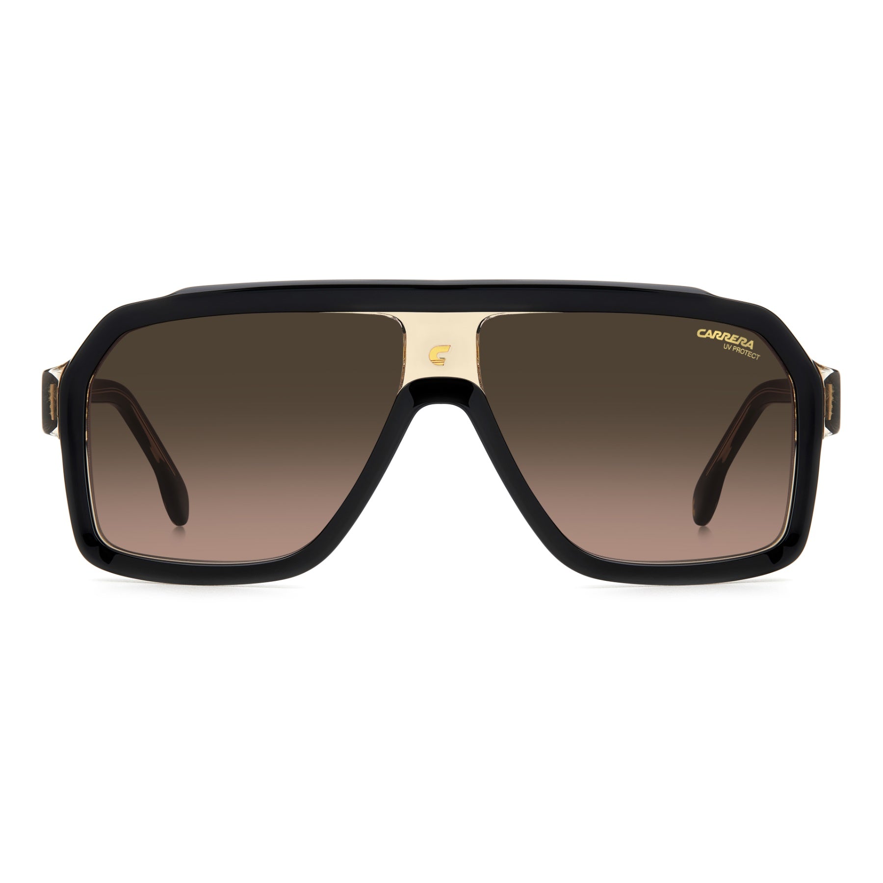 Estas gafas de sol son toda una declaración de intenciones para hombres, que se atreven a ser únicos. El frente piloto, una expresión de la identidad de Carrera, presenta un perfil maxi en acetato con lentes degradadas, de espejo o polarizadas. Una gama de transparencias en las varillas descubre el núcleo metálico. El puente central con el logotipo icónico perfecciona este modelo de coleccionista.