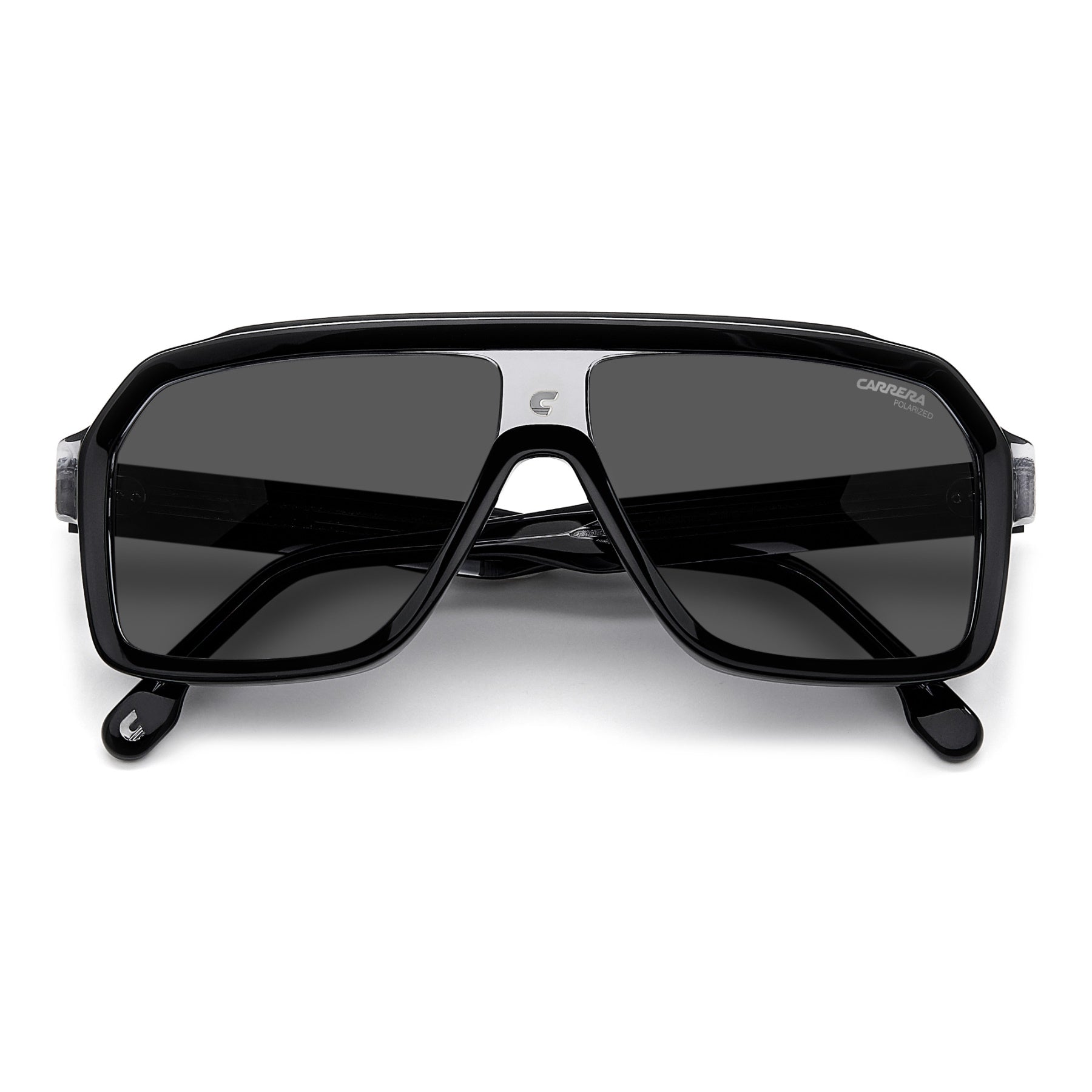Estas gafas de sol son toda una declaración de intenciones para hombres, que se atreven a ser únicos. El frente piloto, una expresión de la identidad de Carrera, presenta un perfil maxi en acetato con lentes degradadas, de espejo o polarizadas. Una gama de transparencias en las varillas descubre el núcleo metálico. El puente central con el logotipo icónico perfecciona este modelo de coleccionista.