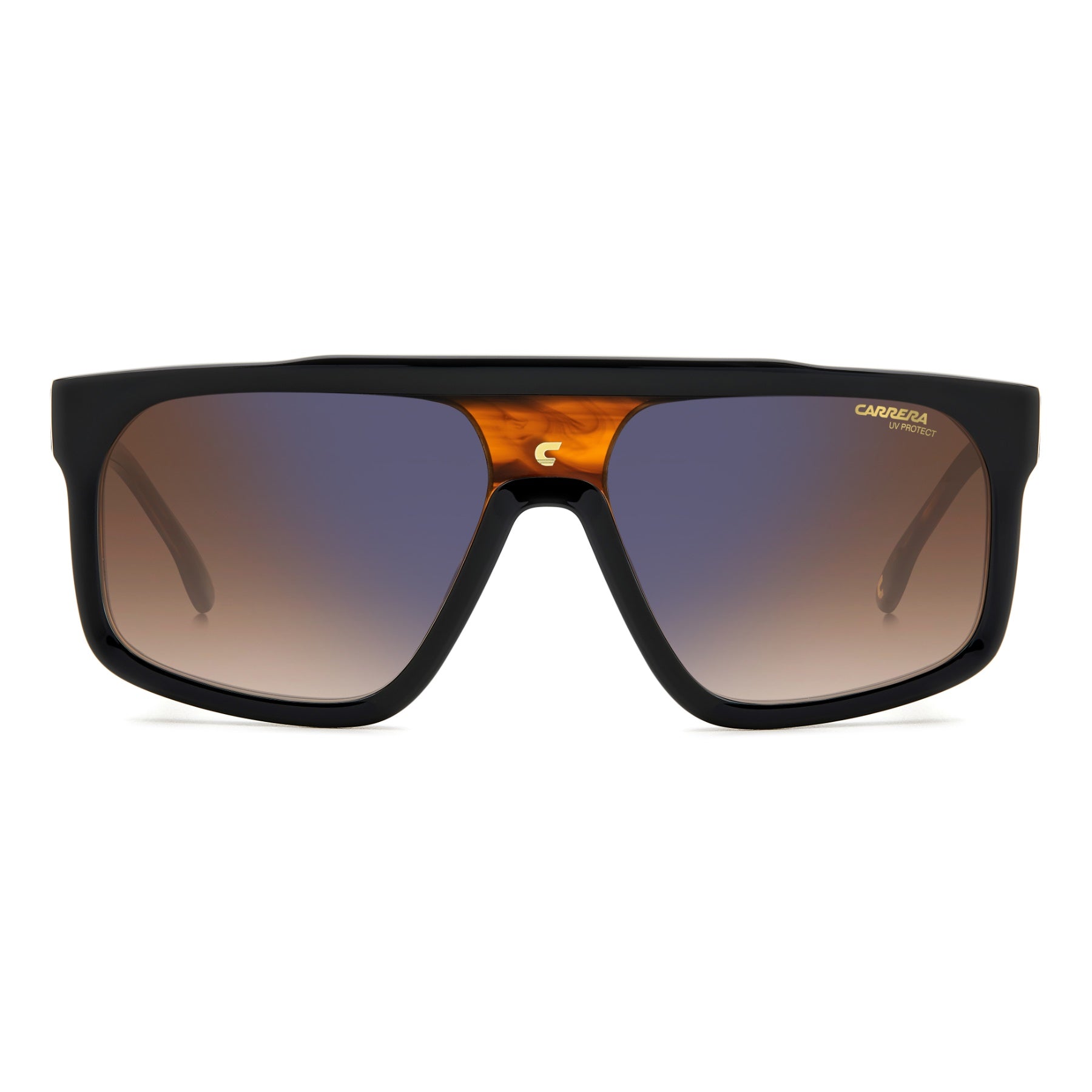 Carrera ha adherido a sus elementos de estilo más icónicos para crear gafas de sol, que son las pioneras de nuevas tendencias. Esta montura de acetato, totalmente plana por la parte superior, va a encantar a los clientes atentos a las modas. Al cambiar los niveles de transparencia, se resalta la C de Carrera, situada en el frente y el centro. Asimismo, la marca las propone en acetato transparente, para mostrar el adorno textural del núcleo de metal en las varillas. La montura puede llevar lentes de corrección, con las opciones de lentes de espejo o polarizadas.