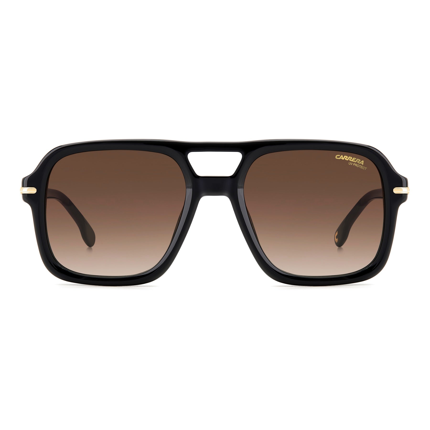 El primer plano va a parar a estas gafas de sol atrevidas de proporciones prominentes y esculpidas. Adoptando uno de los modelos más populares de Carrera (el de aviador con doble puente), aquí la montura es de acetato con insertos en relieve de metal en cada lado, y se completa con varillas esbeltas. Las paletas de colores incluyen una opción multicapa y versiones transparentes con un núcleo de textura visible. Estas gafas pueden llevar lentes de corrección.
