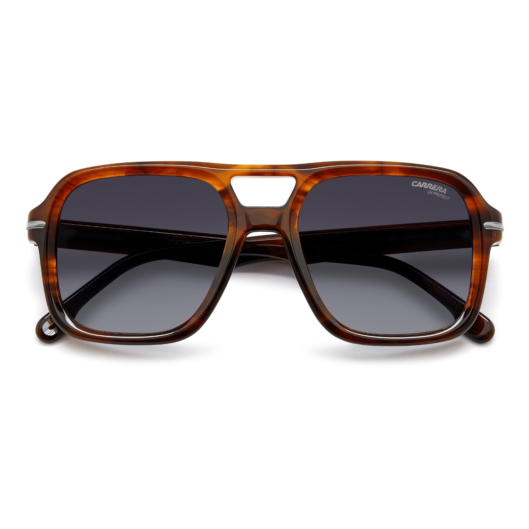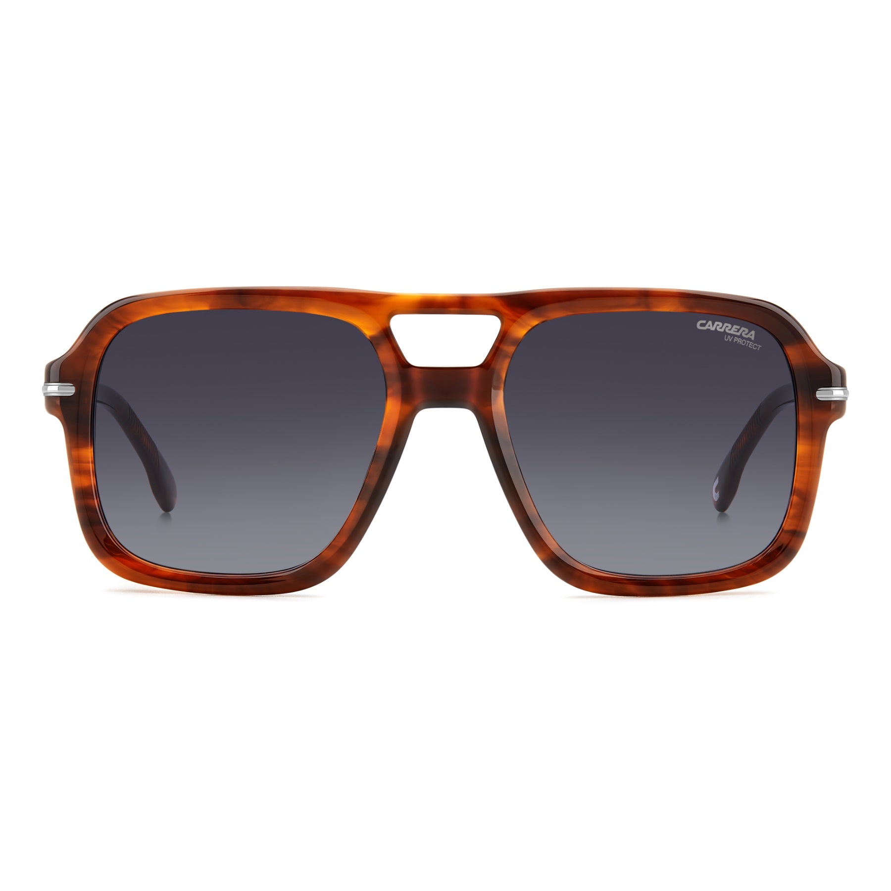 El primer plano va a parar a estas gafas de sol atrevidas de proporciones prominentes y esculpidas. Adoptando uno de los modelos más populares de Carrera (el de aviador con doble puente), aquí la montura es de acetato con insertos en relieve de metal en cada lado, y se completa con varillas esbeltas. Las paletas de colores incluyen una opción multicapa y versiones transparentes con un núcleo de textura visible. Estas gafas pueden llevar lentes de corrección.