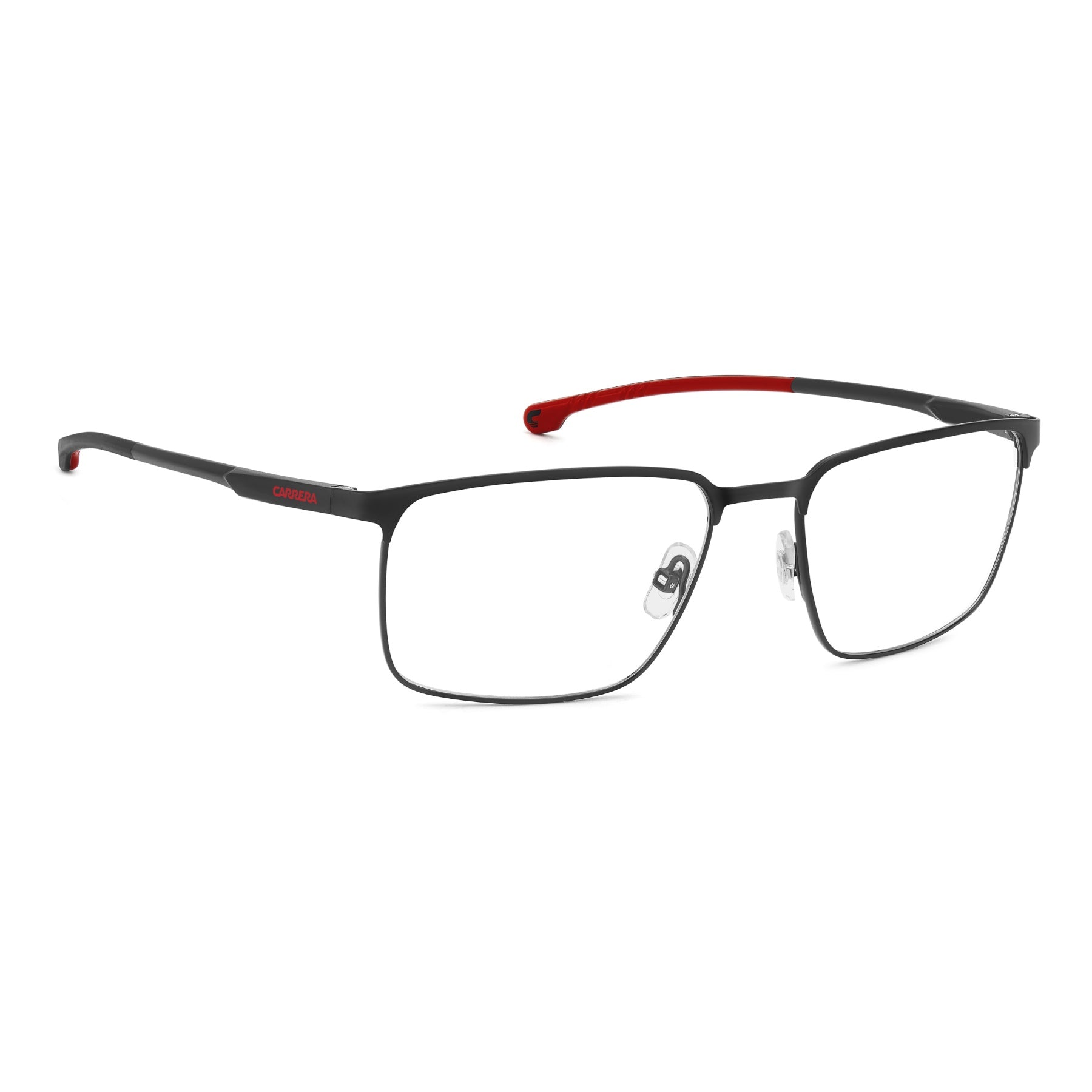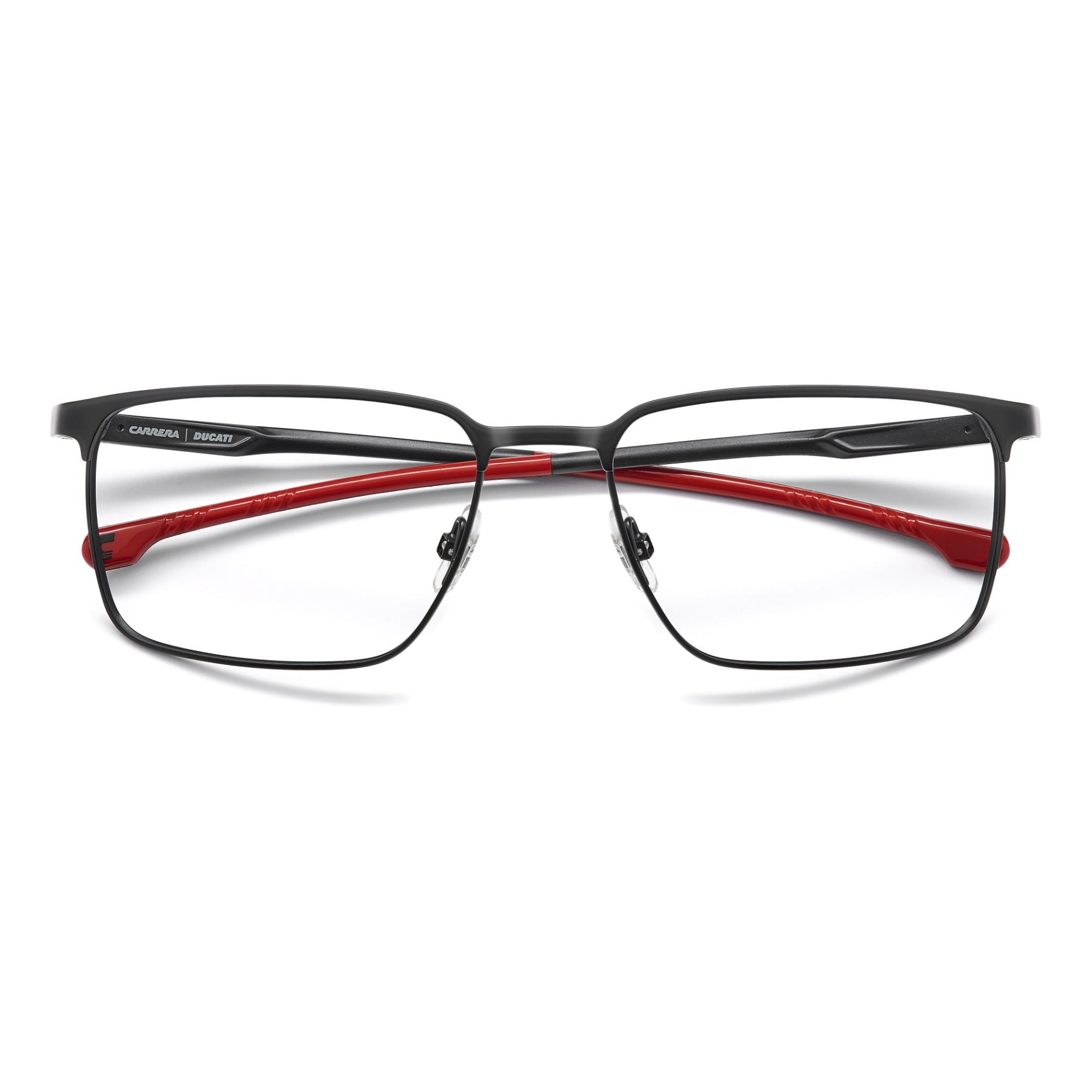 Estas gafas de vista de Carrera | Ducati están diseñadas para ofrecer un alto rendimiento. Su construcción de alta calidad, tampoco, puede pasarse por alto: el frente es de acero inoxidable con almohadillas ajustables, y las varillas son de aluminio con bisagras flexibles. Todo se ha hecho para el confort, aunque la forma de esta gafas impacta en la misma medida. Estas gafas de vista trasladan la emoción del paddock a un accesorio, realizado para llevarlo día tras día.