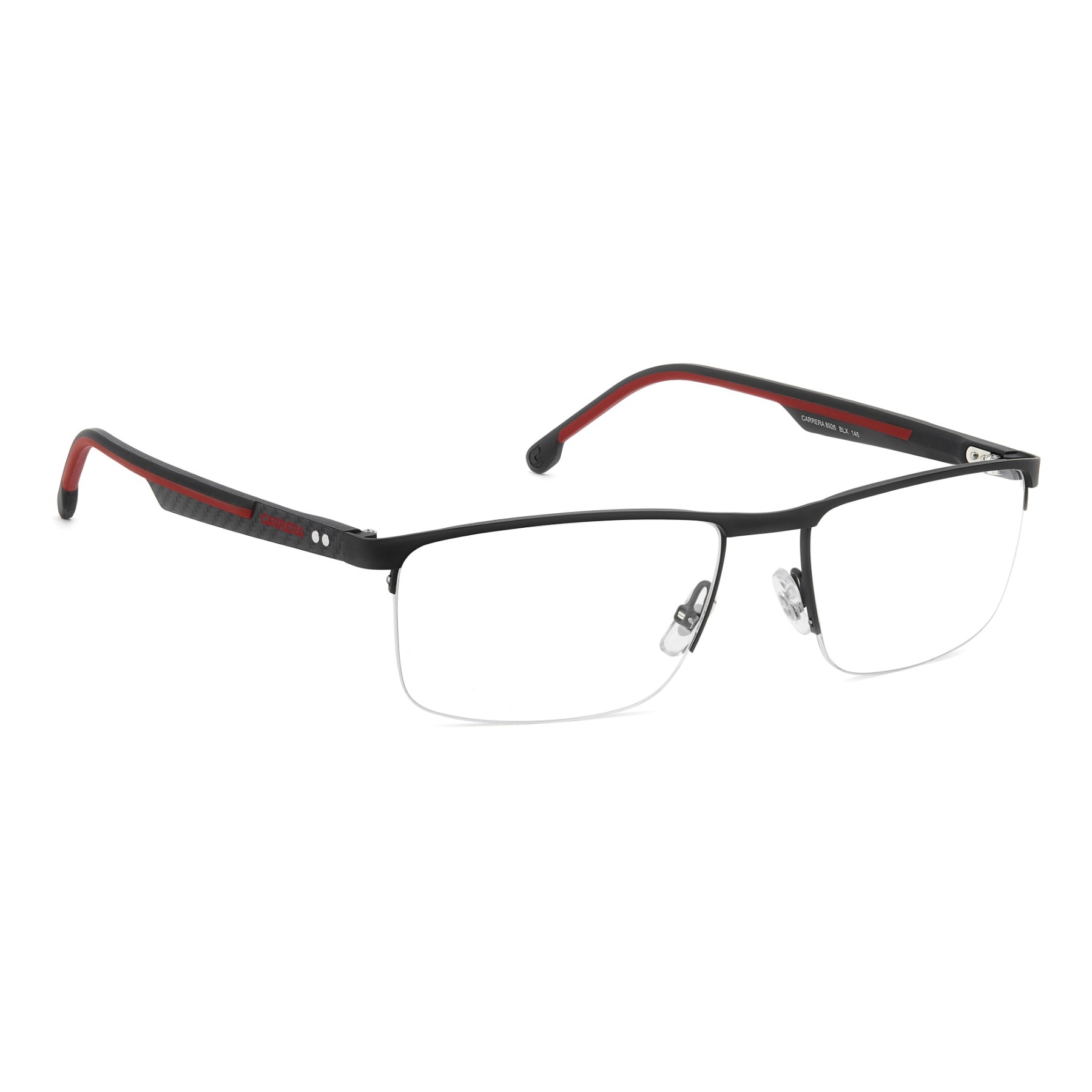 Estas gafas graduadas de Carrera conjugan un diseño funcional y materiales de alta calidad. La semimontura es muy ligera y permanece estable en tu rostro mediante las almohadillas ajustables. Las varillas son de fibra de carbono con insertos revestidos con goma, son de calidad superior y high-tech en aras de la ligereza y la durabilidad.
