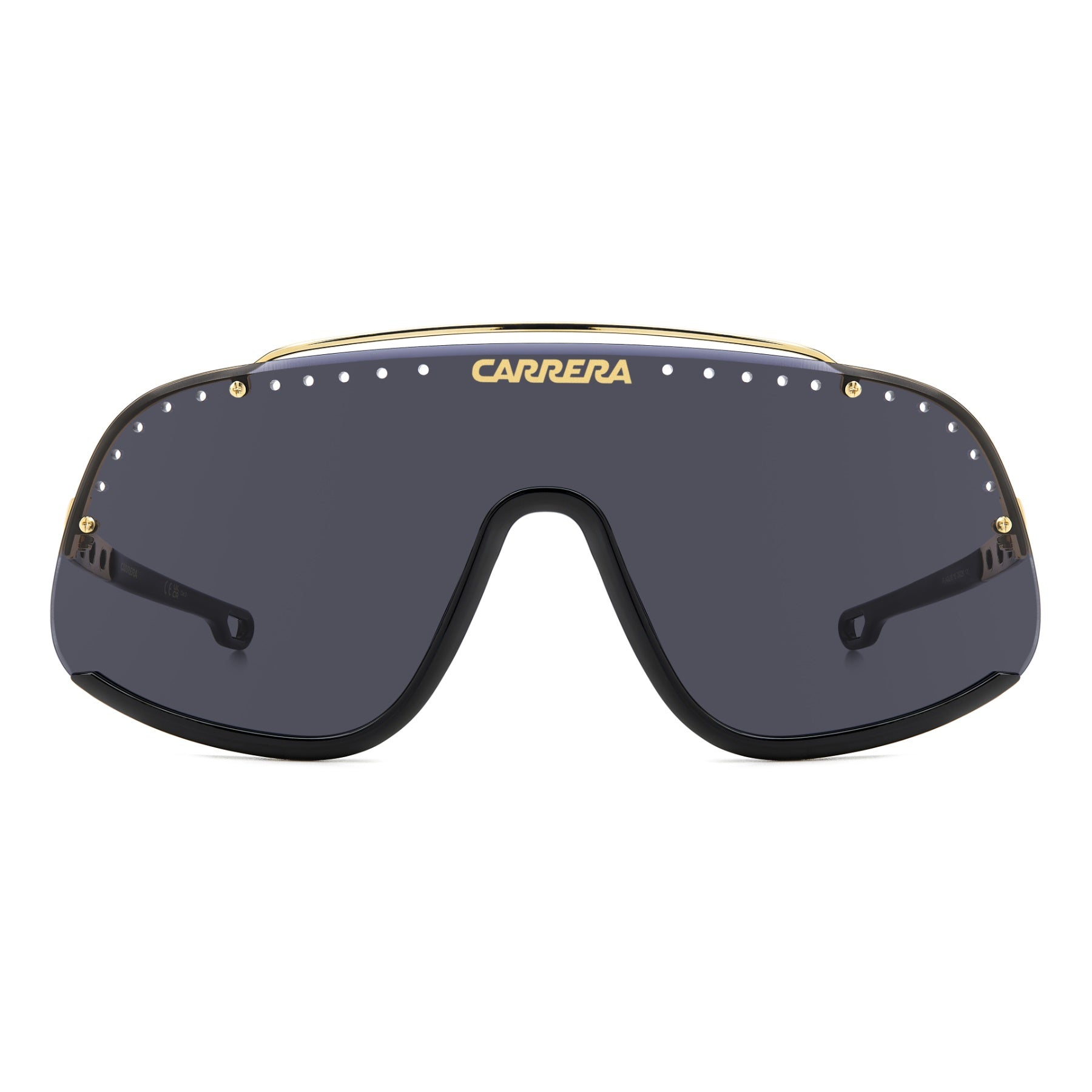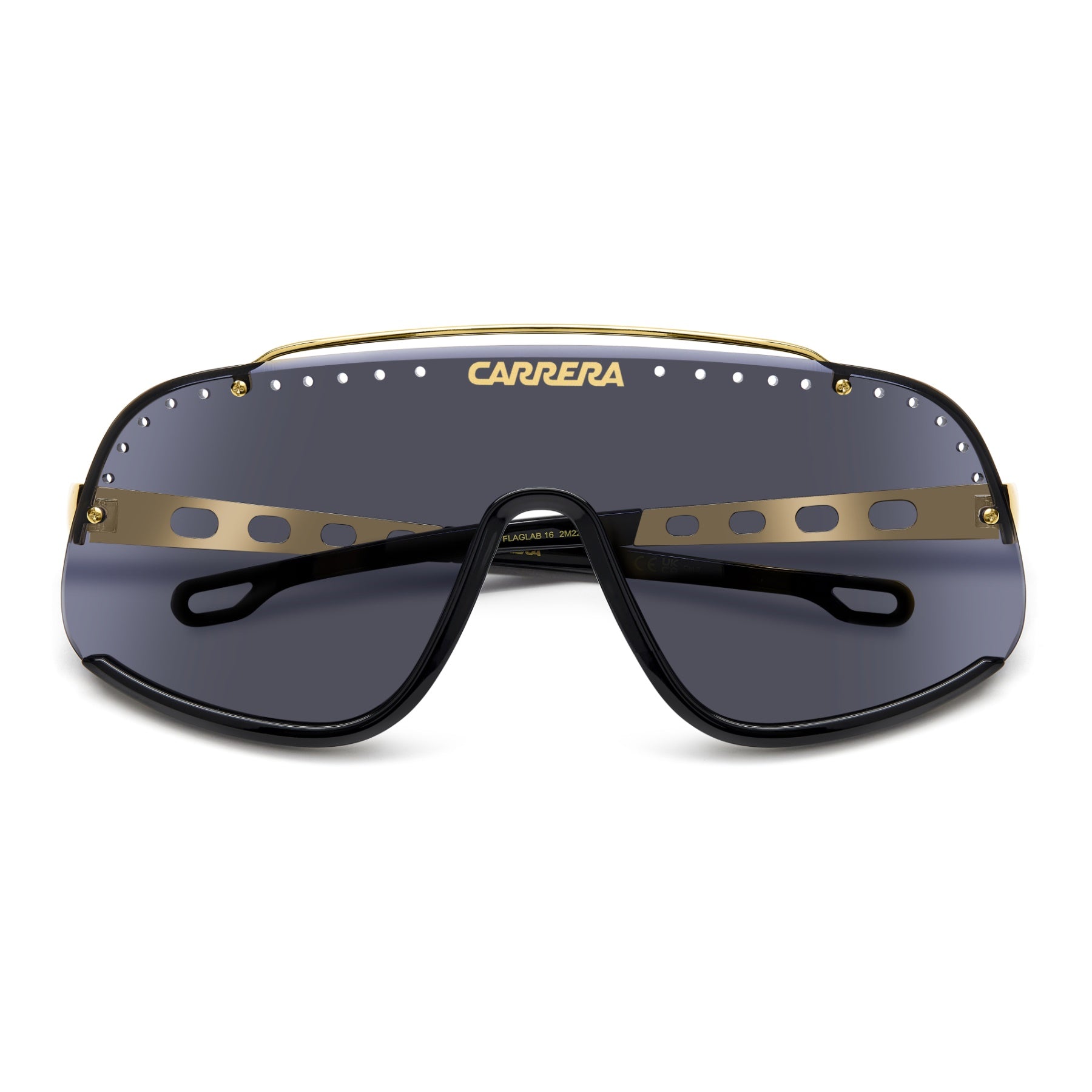 El espíritu competitivo de Carrera se transmite en estas gafas de sol unisex. El frente pantalla se remata con una barra superior metálica esbelta, completada con tornillos decorativos y orificios redondos. Las varillas metálicas presentan también aperturas redondas, retomando el diseño de los volantes de los coches clásicos, que corrieron en la Carrera Panamericana. Algunas versiones presentan lentes de espejo, incluida una variante en naranja, para un look vintage. Este accesorio de coleccionista va en su funda especial.