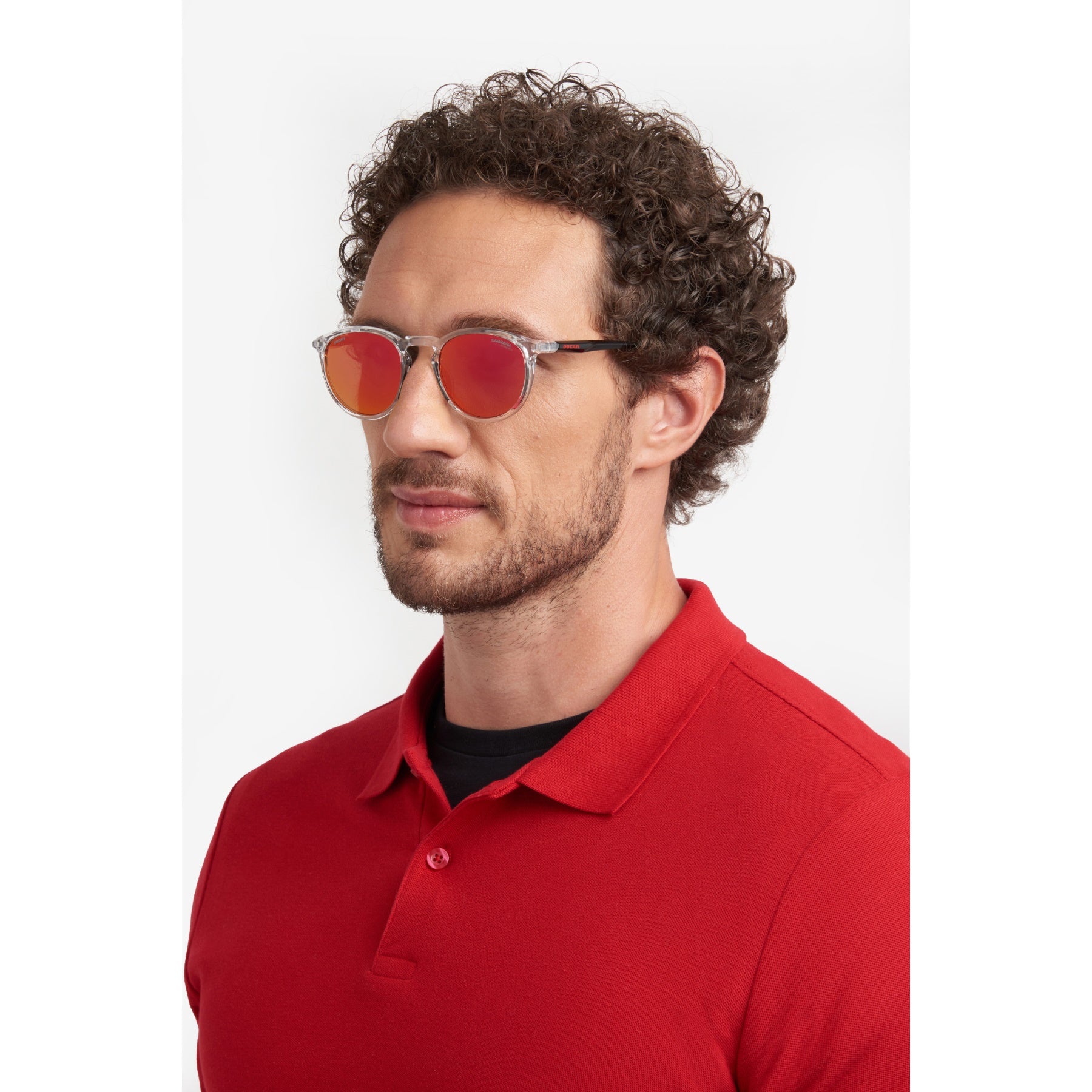 Estas gafas de sol de Carrera | Ducati llevan el estilo al circuito. El frente Pantos, con un puente en forma de boca de llave, favorece casi todos los rostros, incluso los femeninos, que quieren atreverse con un look deportivo. Las varillas rinden tributo al diseño de la Panigale, mientras que los perfiles esbeltos y los terminales de goma brillante convierten estas gafas en un accesorio ideal bajo el casco de una moto. La visión se optimiza con lentes de corrección, que pueden ser de espejo o polarizadas.