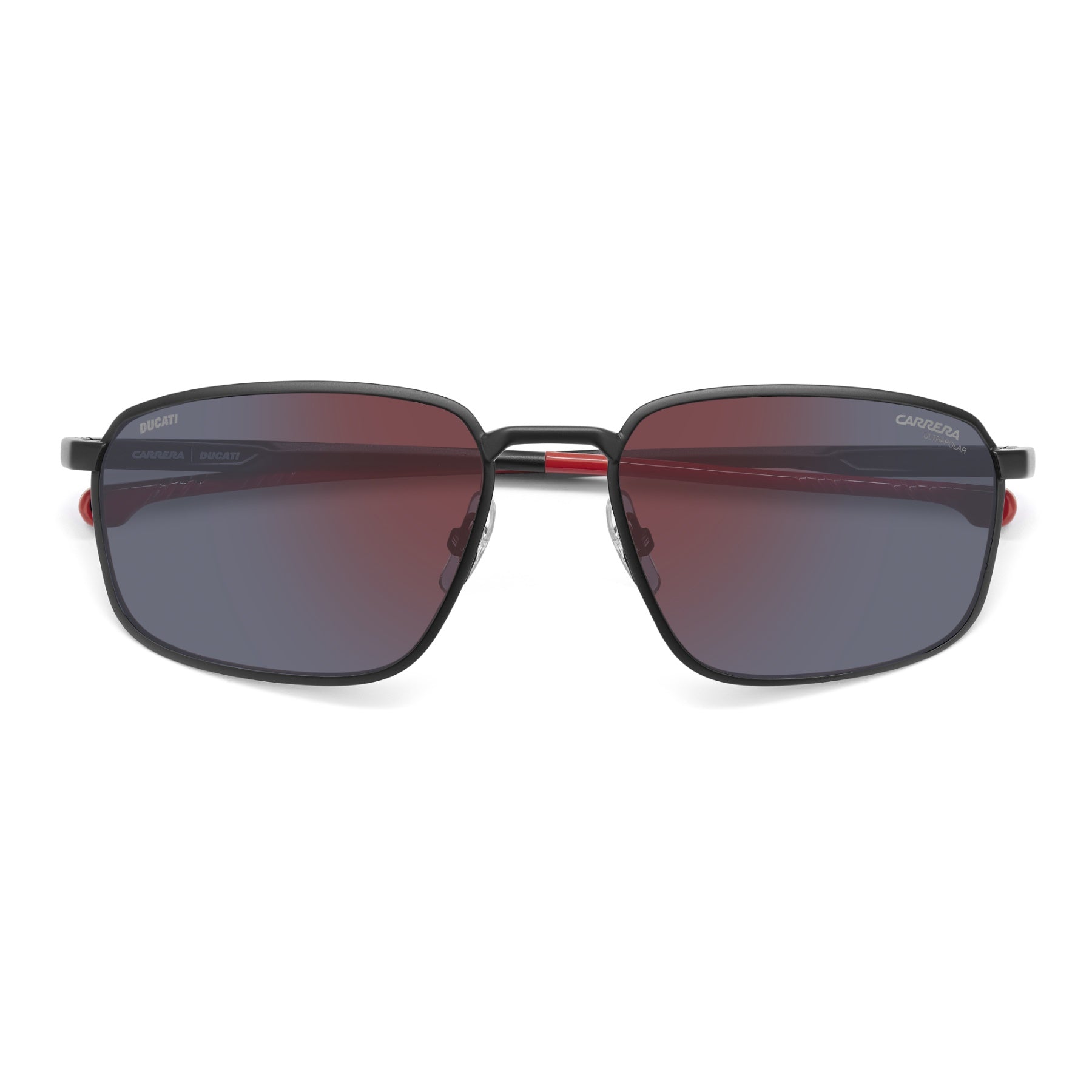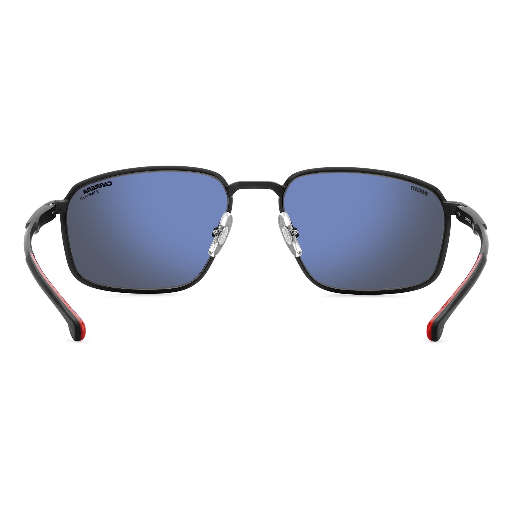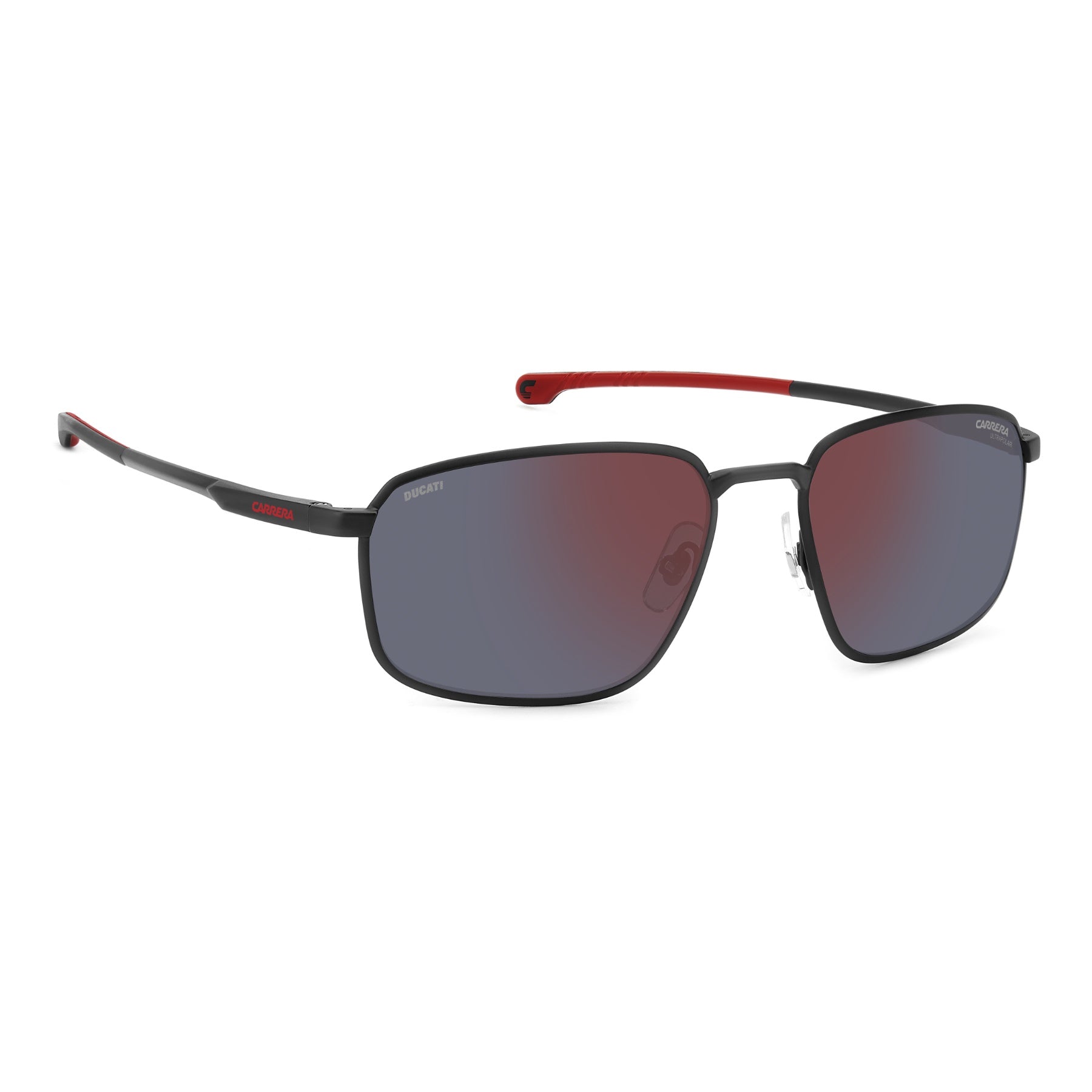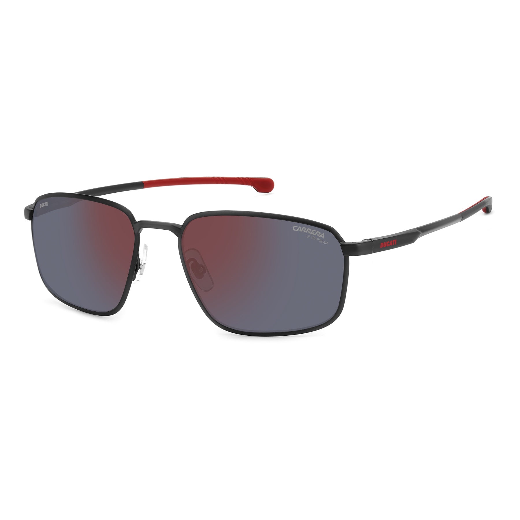Ces lunettes de soleil Carrera | Ducati sont les vedettes des circuits et de leurs tribunes. Avec sa monture rectangulaire aux profils fins extrêmement polyvalents, cette paire est idéale pour compléter des tenues décontractées ou être portée avec des ensembles habillés pour un look plus audacieux. Les branches sont en aluminium, un matériau haute performance de premier choix pour les lunettes de sport. Les plaquettes de nez réglables augmentent encore le niveau de confort, tout comme les charnières flexibles et la possibilité de les équiper de verres solaires correcteurs. Ces lunettes sont disponibles avec des verres polarisés ou ultrapolaires.