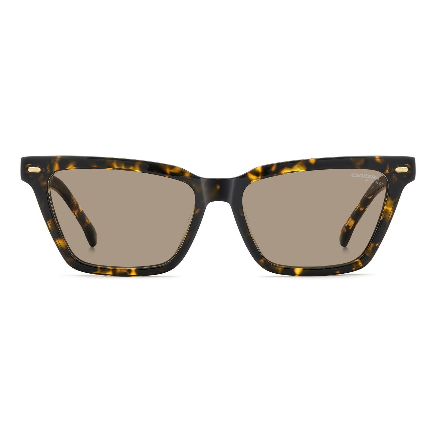 Ces lunettes de soleil Carrera pour femme revisitent un design classique avec une touche contemporaine. Le modèle se distingue par les lignes modernes de sa monture œil de chat. La version ivoire avec détails multicouches mérite d'être soulignée, rappelant l'emblématique branche Grand Prix. La monture en acétate est ornée de rivets et du logo Carrera C embossé, éléments métalliques caractéristiques de Carrera.