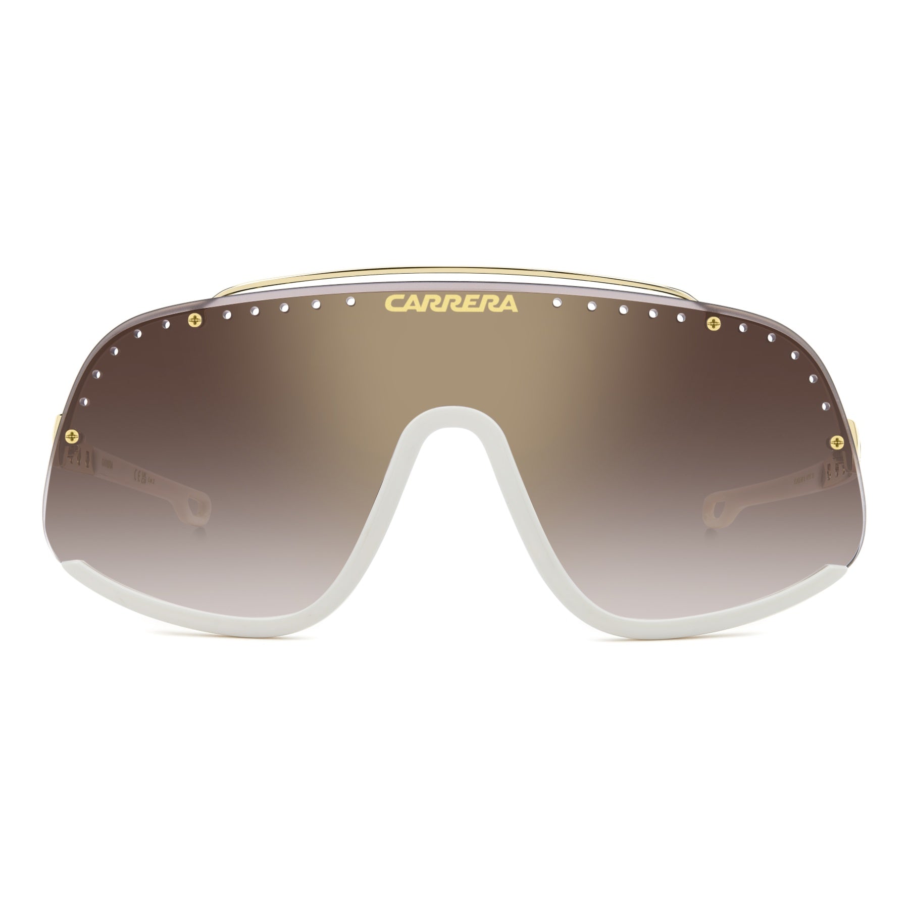 L’esprit de compétition propre à Carrera s'exprime dans ces lunettes de soleil unisexes. La face de type masque est agrémentée d'une fine barre métallique, complétée par des vis décoratives et des orifices d'aération ronds. Les branches métalliques présentent elles aussi des orifices de forme ronde, en clin d'œil au design des volants des voitures mythiques de la Carrera Panamericana. Certaines versions sont équipées de verres miroirs, dont une version orange pour un look vintage. Cette pièce de collection est livrée dans un emballage spécial.