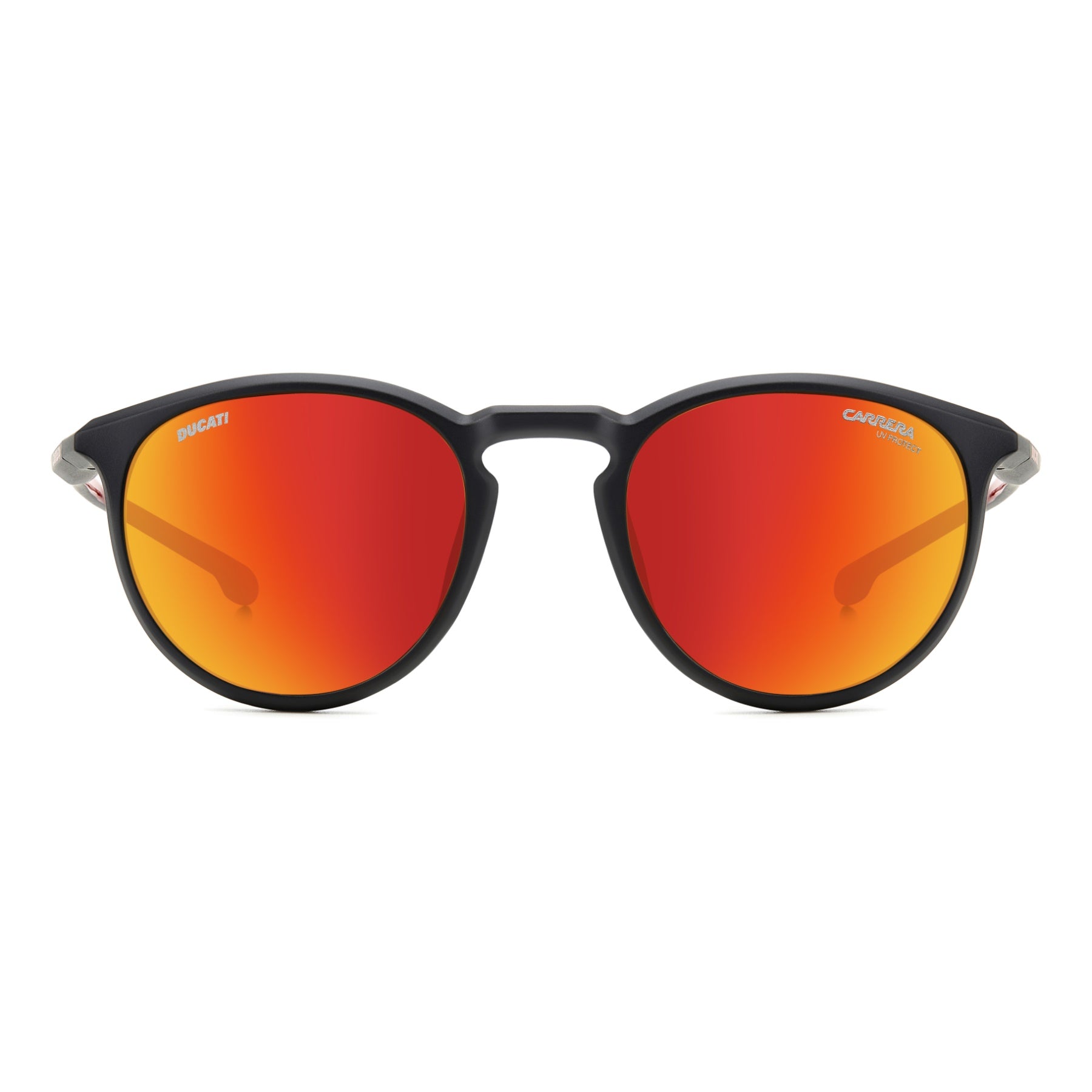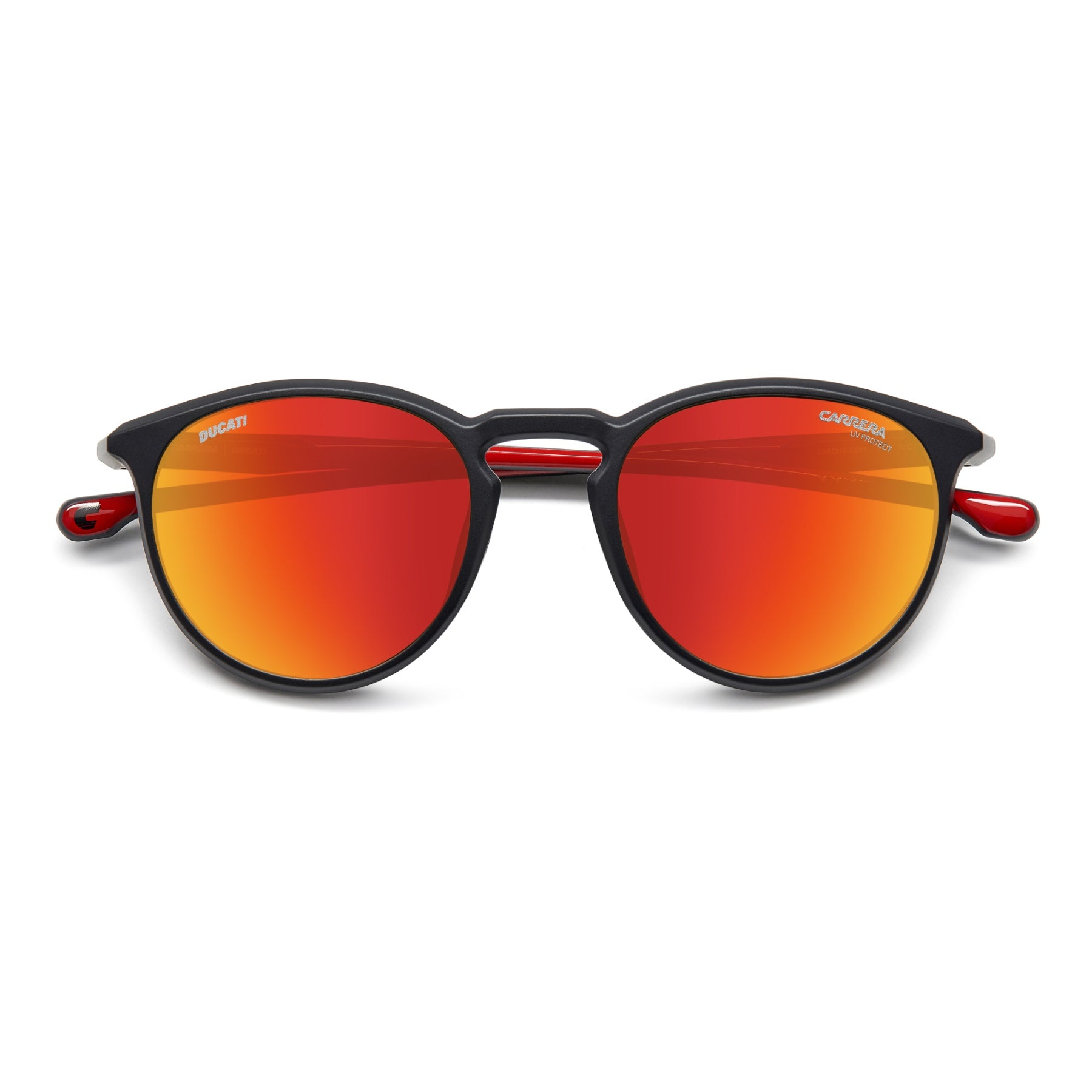 Ces lunettes de soleil Carrera | Ducati apportent du style sur les circuits de course. La monture Pantos avec son pont en trou de serrure convient à pratiquement tous les visages, même pour les femmes audacieuses au look sporty. Ces branches sont un hommage au design de la Panigale, tandis que leur forme épurée et les manchons en caoutchouc brillant en font une paire idéale à porter sous un casque de moto. Il suffit de les équiper de verres correcteurs pour une vision optimale. Versions miroir ou polarisé disponibles.
