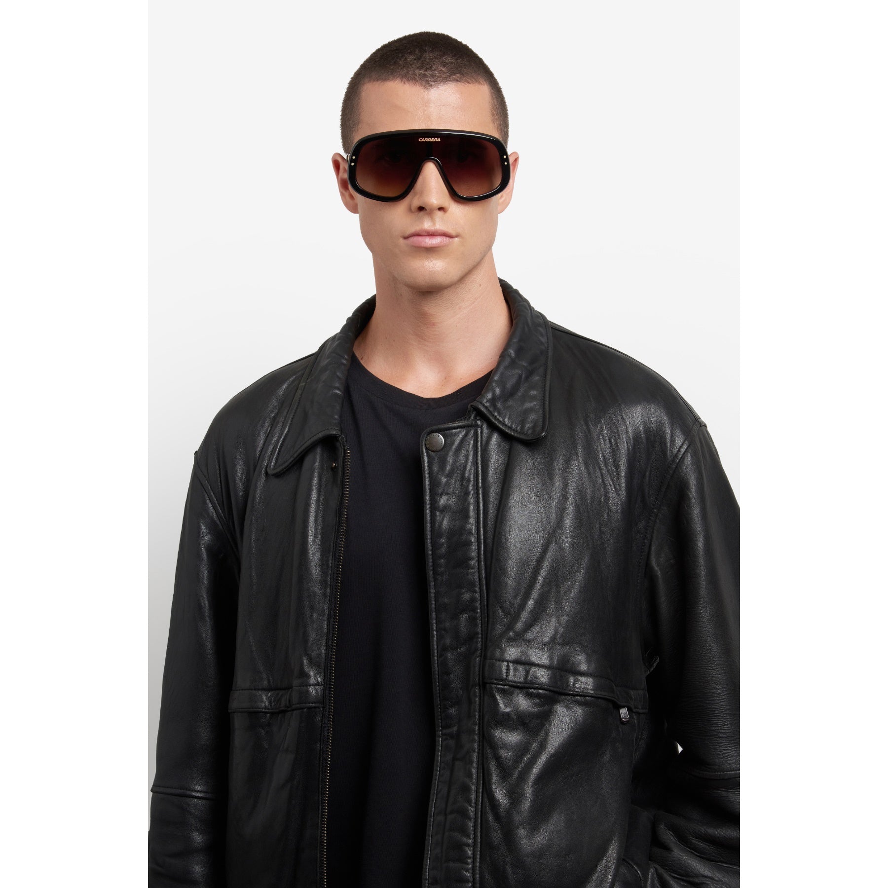 Ces lunettes de soleil Carrera apportent une touche sportive à la mode. La monture masque est profilée en acétate, complétée par un logo imprimé sur les verres. Les branches sont un véritable joyau, avec les orifices ronds reprenant le design des volants des voitures mythiques de la Carrera Panamericana. Les versions avec des verres jaunes ou orange leur confèrent un aspect vraiment évocateur. Cette pièce de collection est livrée dans un emballage spécial.