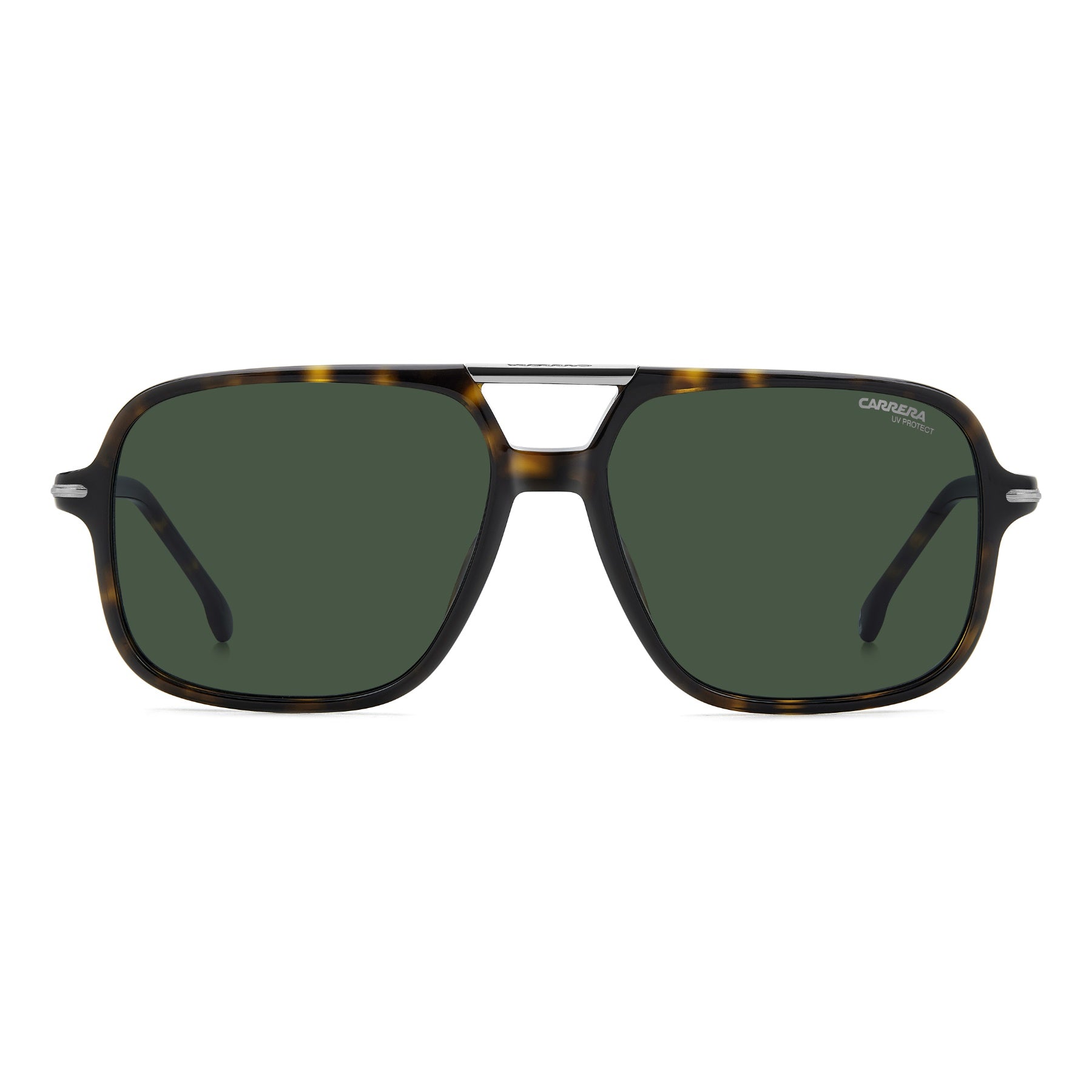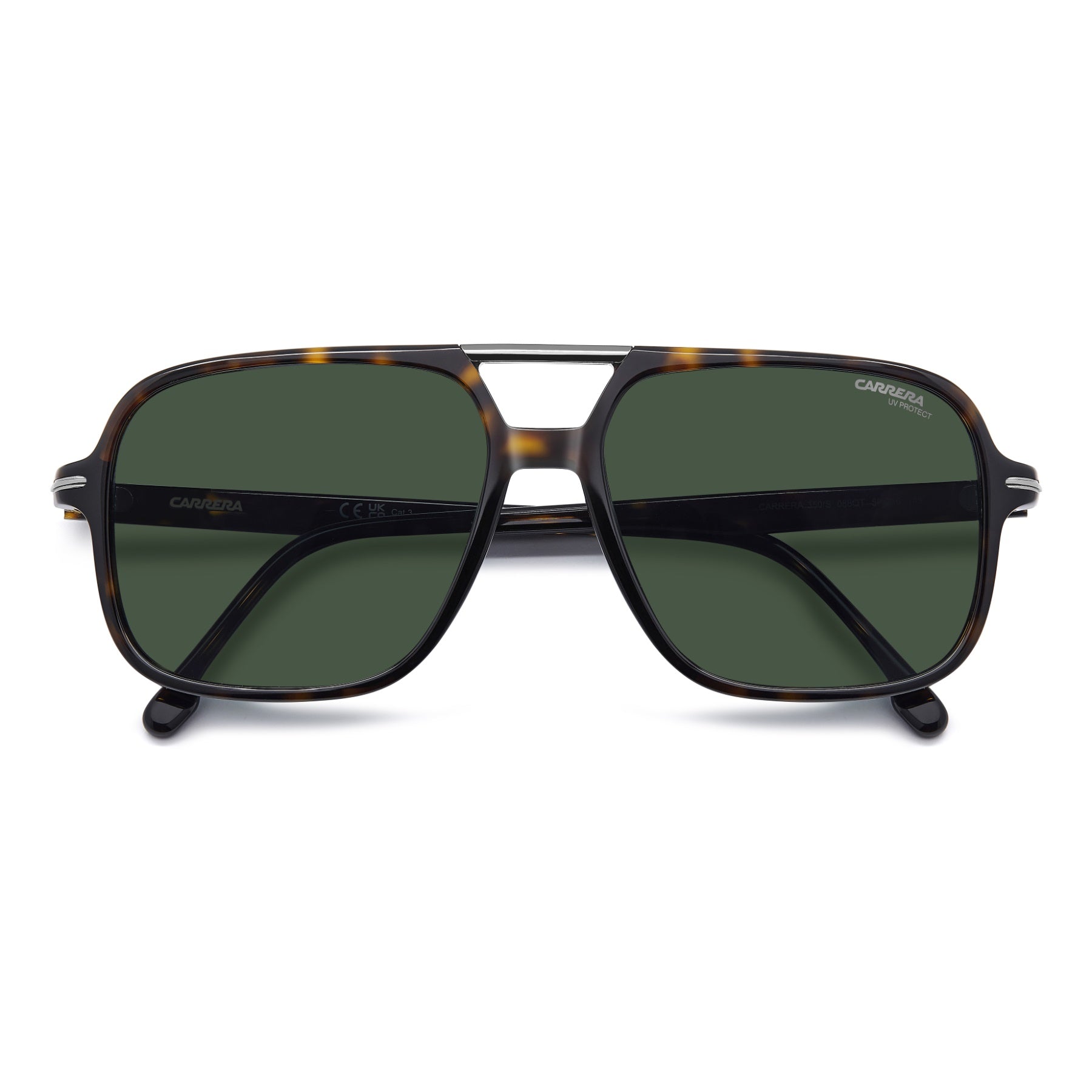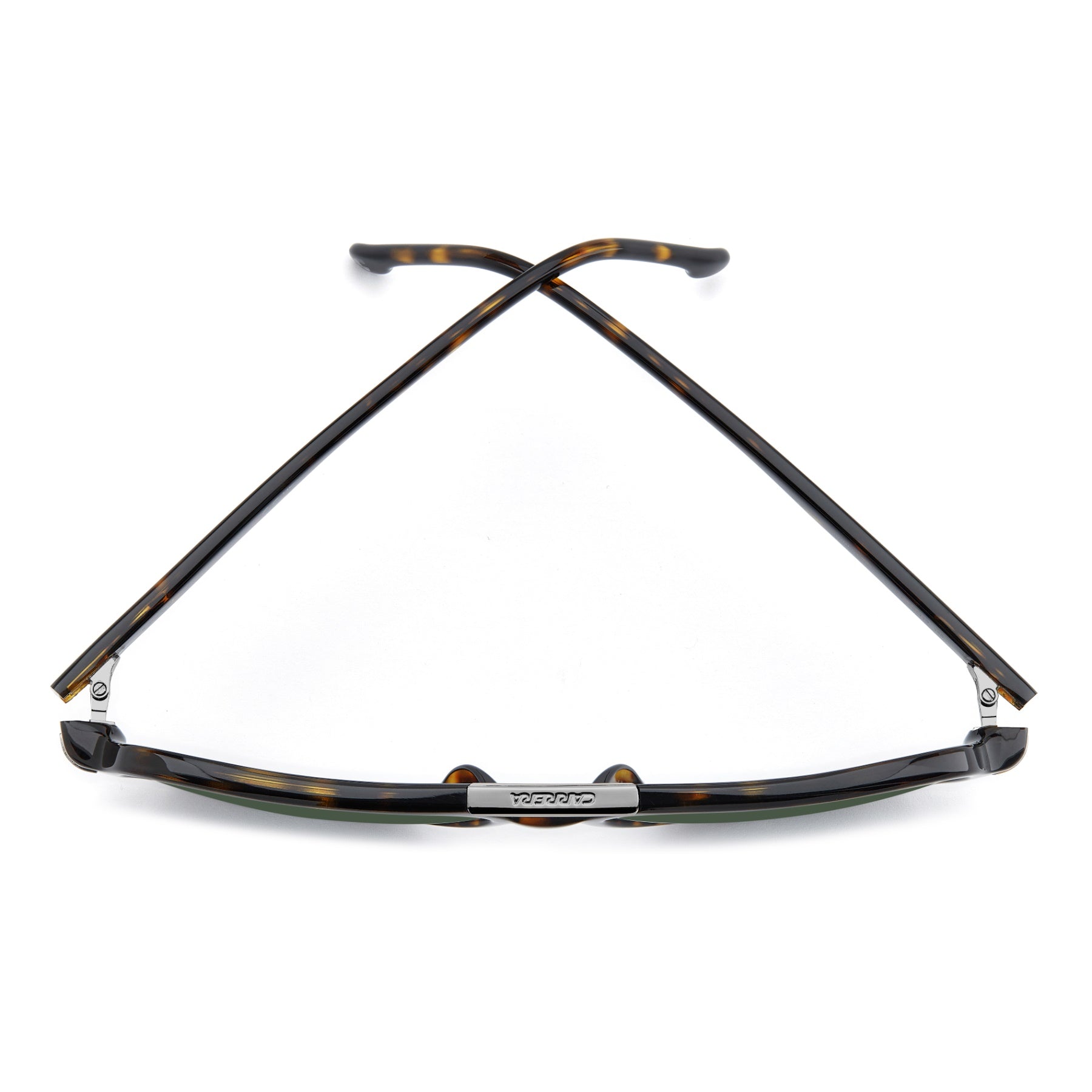 Ces lunettes de soleil sont clairement d'inspiration vintage. Carrera a puisé dans ses archives pour mettre au point ses montures navigateur à double pont, un look aussi célèbre que caractéristique de la marque. Des empiècements métalliques ressortent sur la structure en acétate, tels que le « C » Carrera qui relient la face aux branches. Les verres sont disponibles en version miroir, polarisée ou photochromique, cette dernière étant capable de s'assombrir en cas d'exposition à une lumière vive.