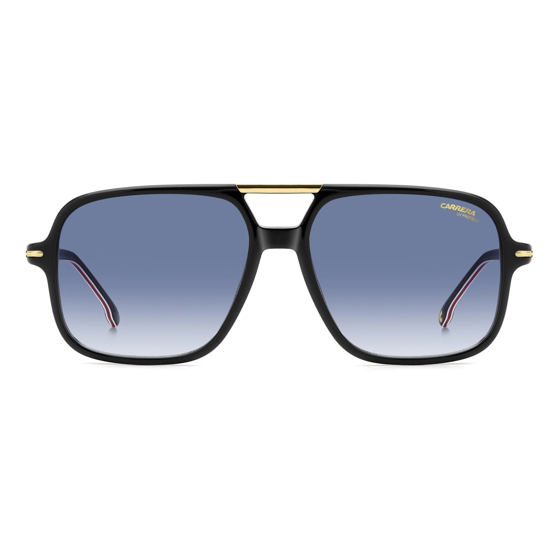 C’è un’evidente ispirazione retrò in questi occhiai da sole. Del resto, Carrera ha attinto dai propri archivi per sviluppare la montatura navigator con doppio ponte, tanto celebre quanto identitaria. Sulla struttura in acetato spiccano gli inserti metallici, compresa la “C” che connette il frontale alle aste. Da scegliere in versione specchiata, polarizzata o fotocromatica, quest’ultima capace di adattarsi ai cambiamenti di luce.