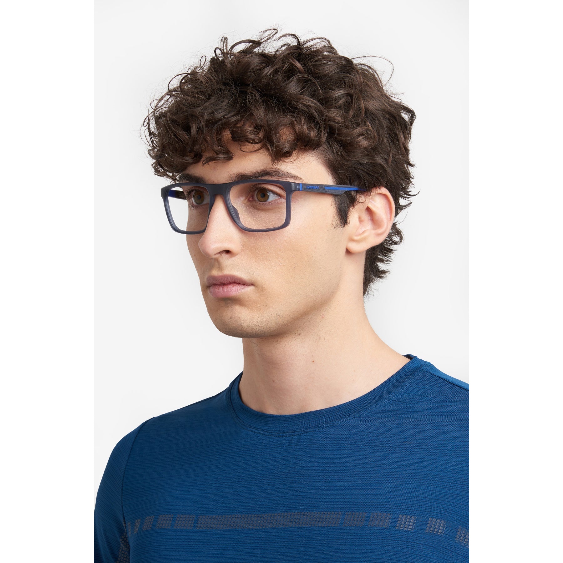 Occhiali da vista Carrera votati all’estetica athleisure. La montatura iniettata ha una silhouette rettangolare assolutamente versatile e maschile. La vera innovazione è nelle aste dal design dinamico, con cerniere flessibili e inserti gommati per una maggiore stabilità. L’effetto bi-color è un omaggio alla flag Carrera. I terminali forati sono presi in prestito dal mondo active wear e prolungano le performance sportive nella quotidianità.