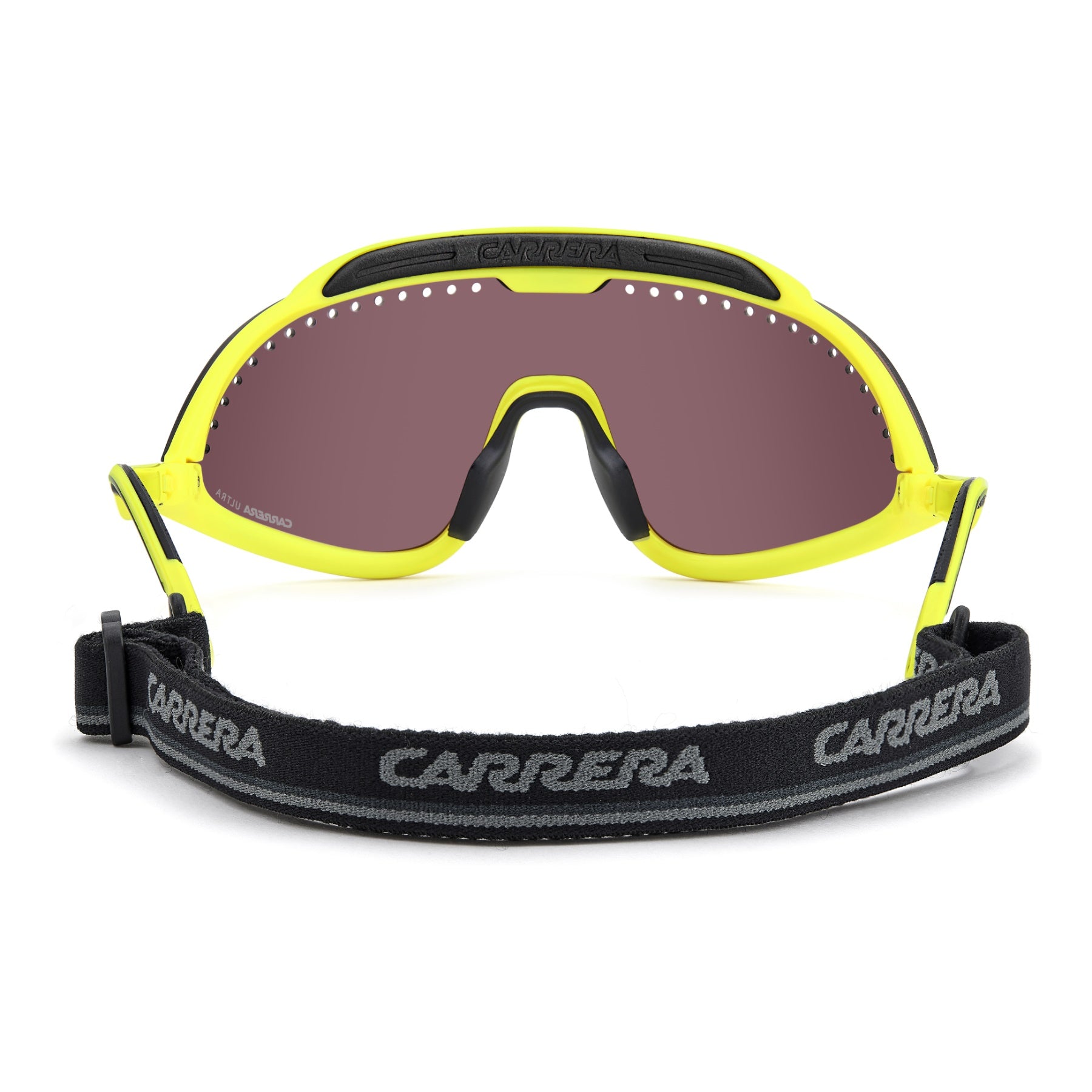 I collezionisti non si lasciano sfuggire questi occhiali da sole sportivi Carrera in edizione speciale. La maschera con fori di ventilazione arriva dall’archivio Carrera, oggi più che mai contemporanea. Include due lenti intercambiabili, dal diverso colore e grado di protezione. Il sistema di cambio lente con clip magnetiche è un brevetto Carrera. Il cordino elastico removibile è un ulteriore elemento estetico e pratico insieme.