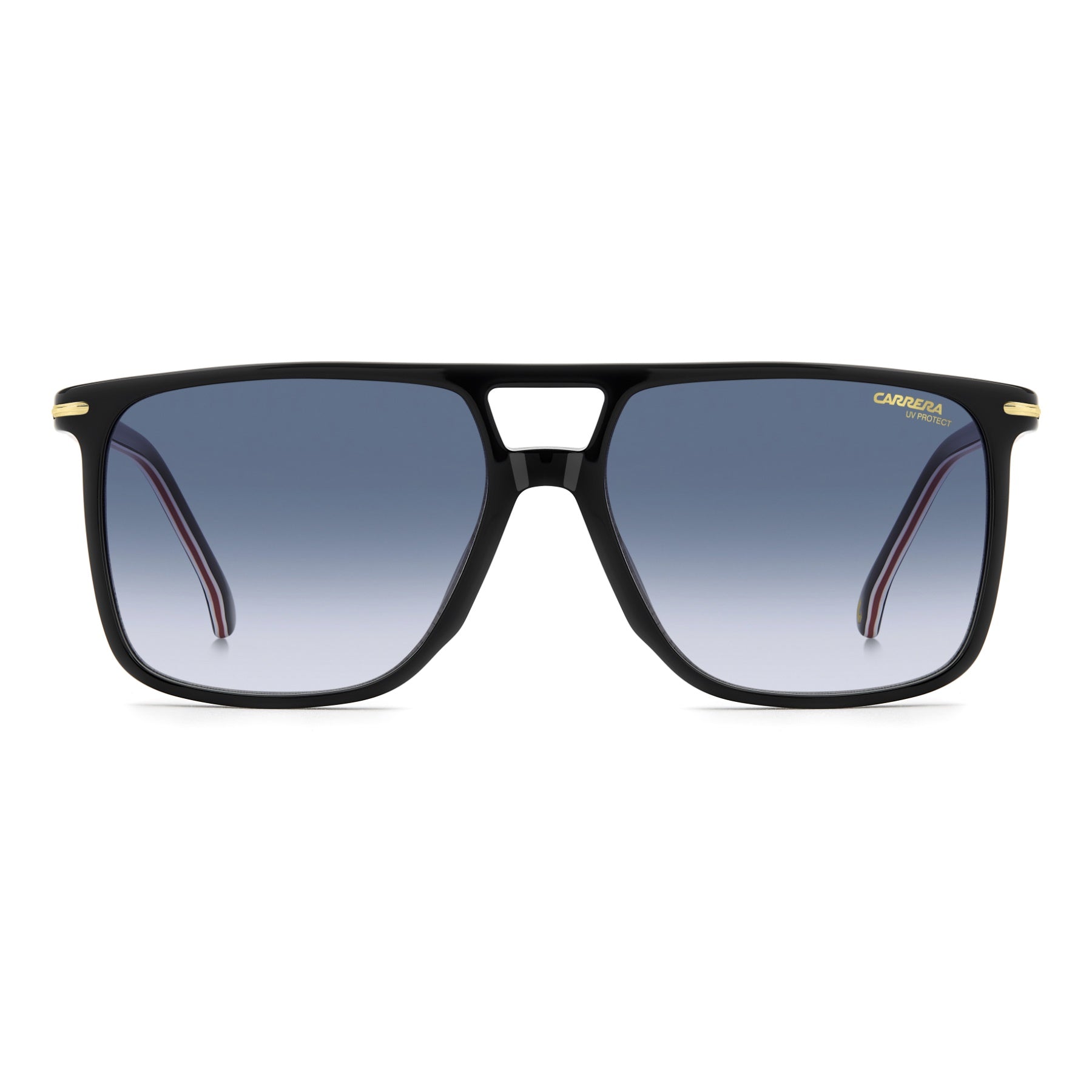 Occhiali da sole Carrera dallo stile senza tempo, con frontale navigator e doppio ponte. La costruzione in acetato è arricchita da inserti metallici che dal frontale proseguono sulle aste. Molteplici le varianti colore proposte, anche trasparente con anima a vista, o con trattamento multistrato nei colori Carrera. Disponibile anche con lenti polarizzate o fotocromatiche, per una visuale ancora più nitida.