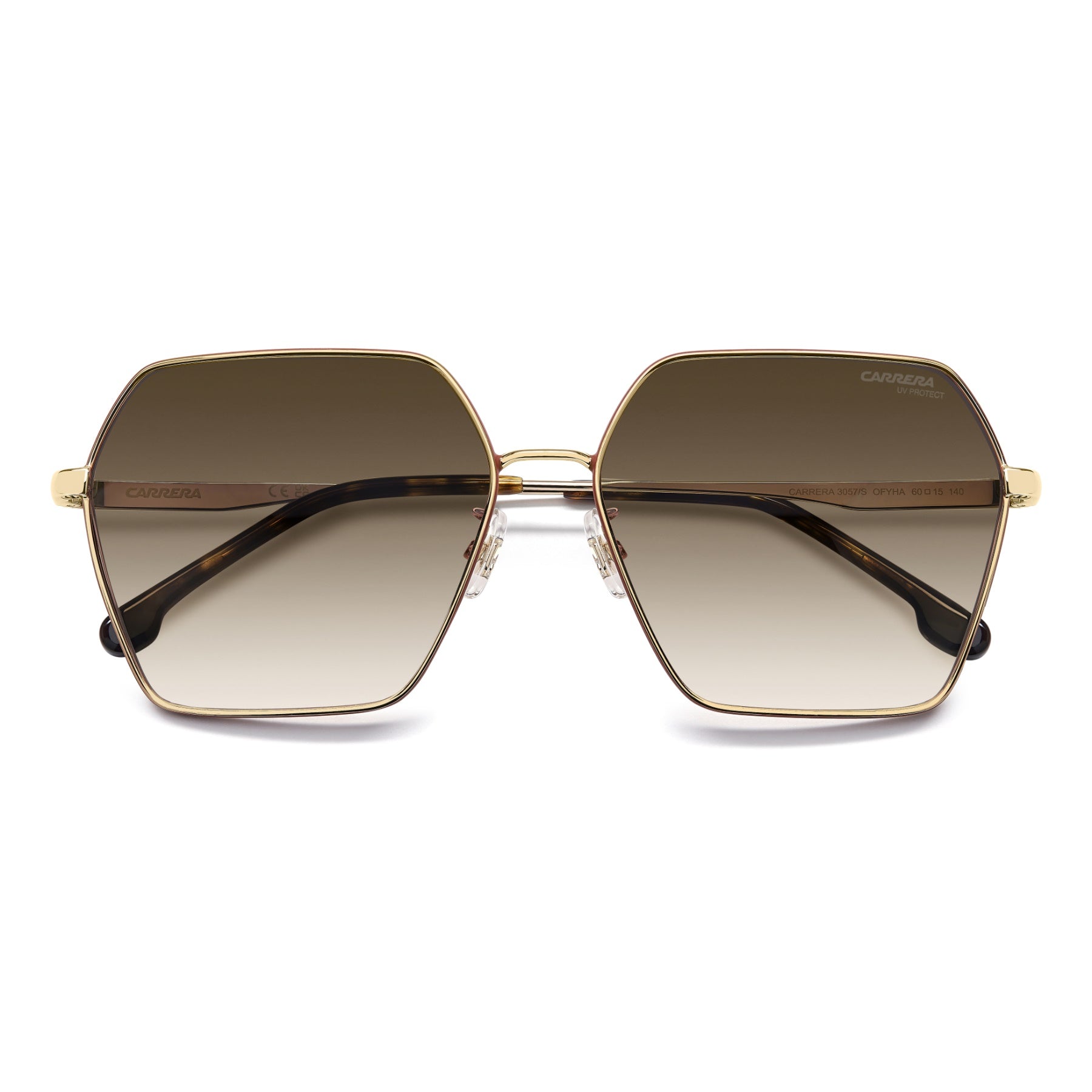 Carrera sa come rendere unici gli occhiali da sole. Questo modello per donna sorprende con un frontale di forma esagonale. Il profilo è smaltato nelle nuance del momento, in tinta con le lenti. Queste ultime sono sfumate, disponibili anche specchiate. La struttura è leggerissima, i naselli sono regolabili.