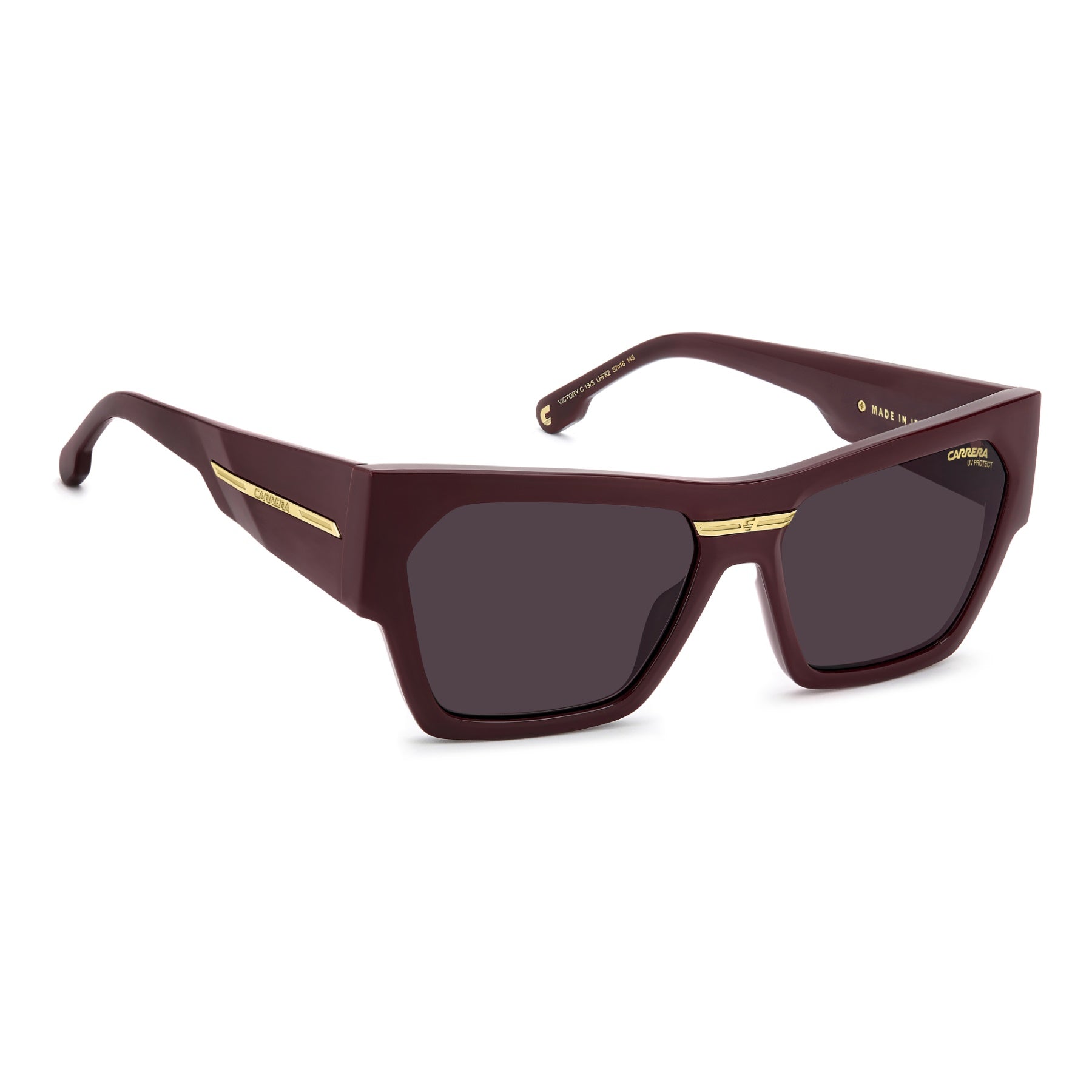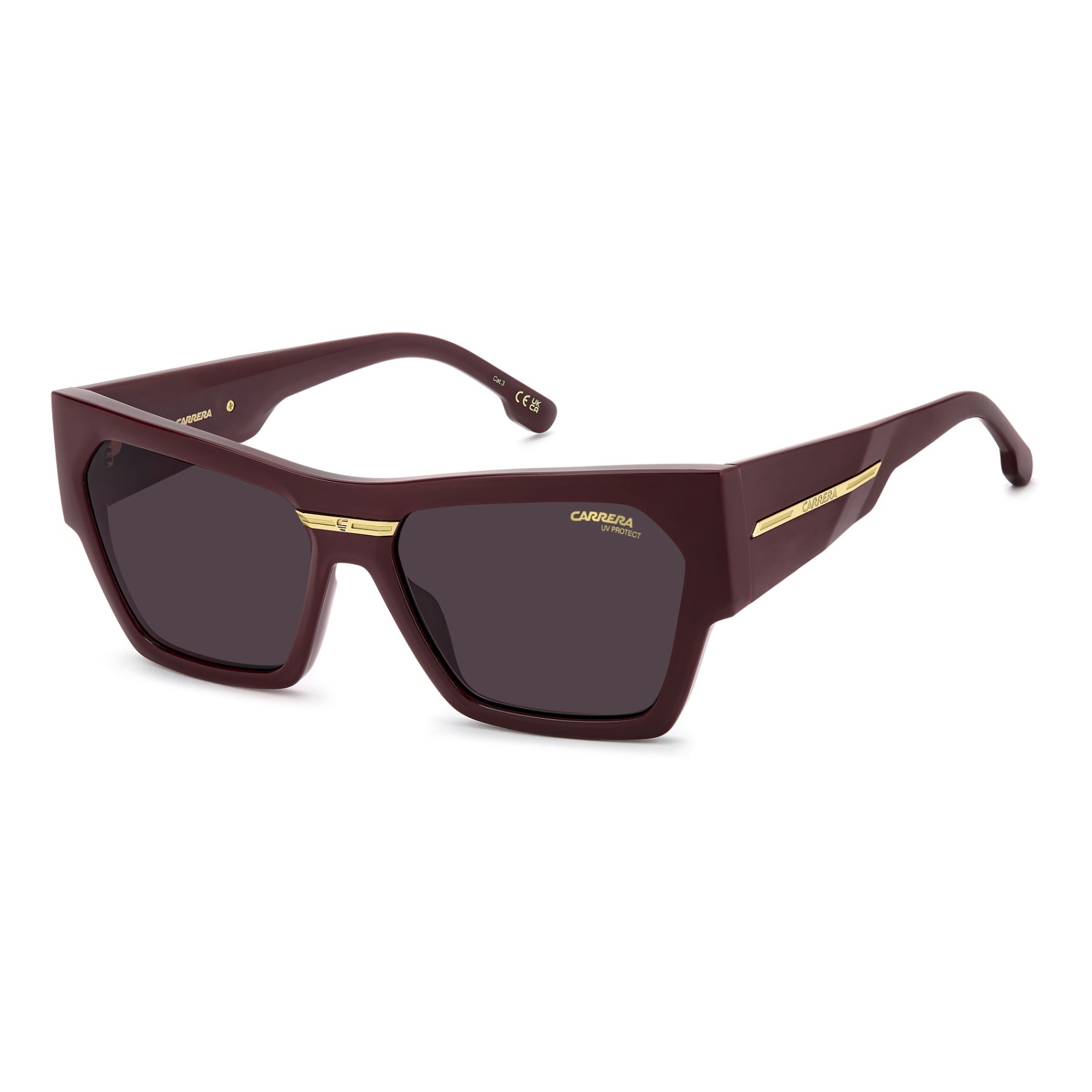 Occhiali da sole realizzati in Italia con tutto il carattere bold di Carrera. La forma cat-eye del frontale è assolutamente moderna, le maxi aste sono la novità Carrera per questa stagione. La placca metallica con la C aggiunge iconicità. Il modello arriva in nero e oro tipico Carrera o nelle nuance di stagione, anche trasparenti.