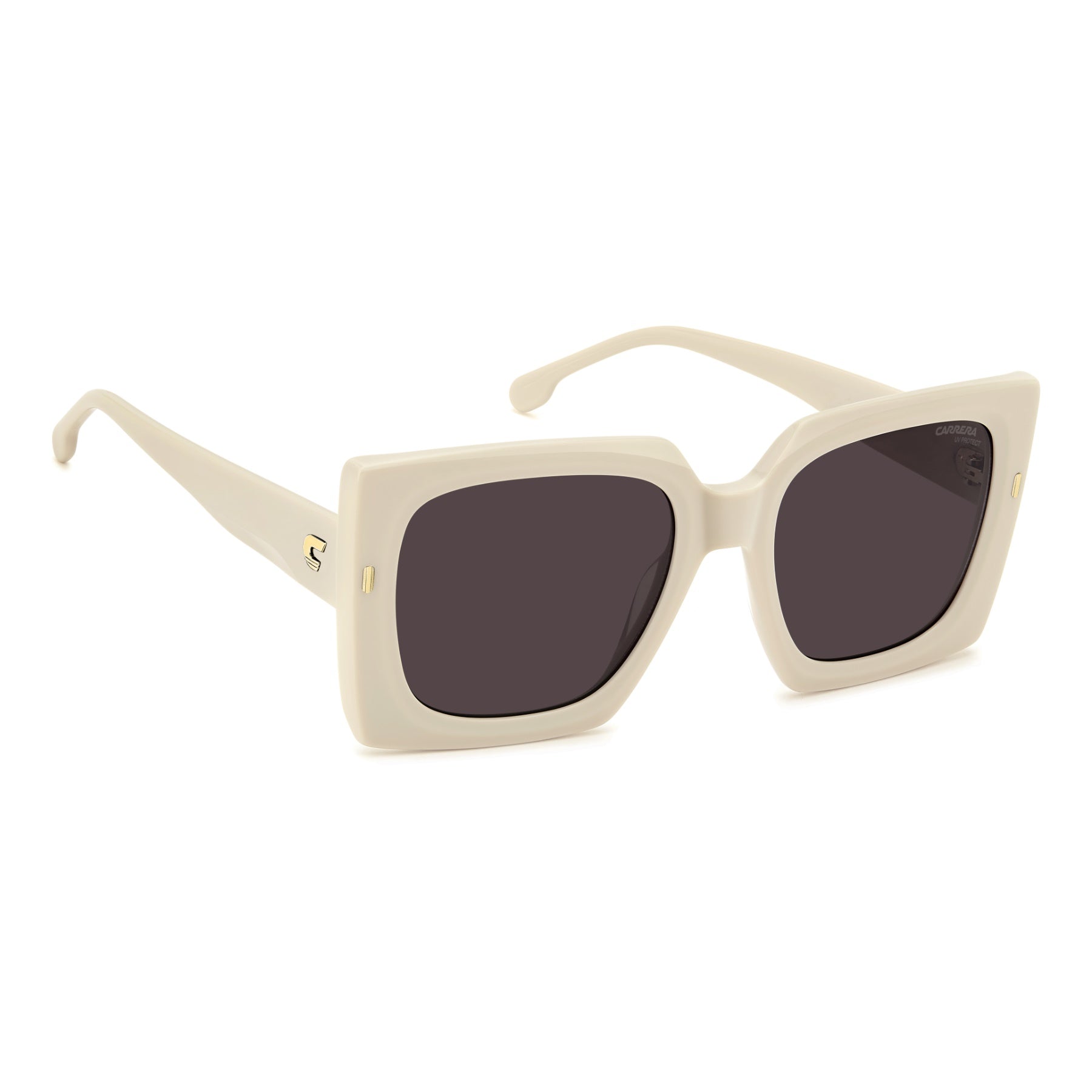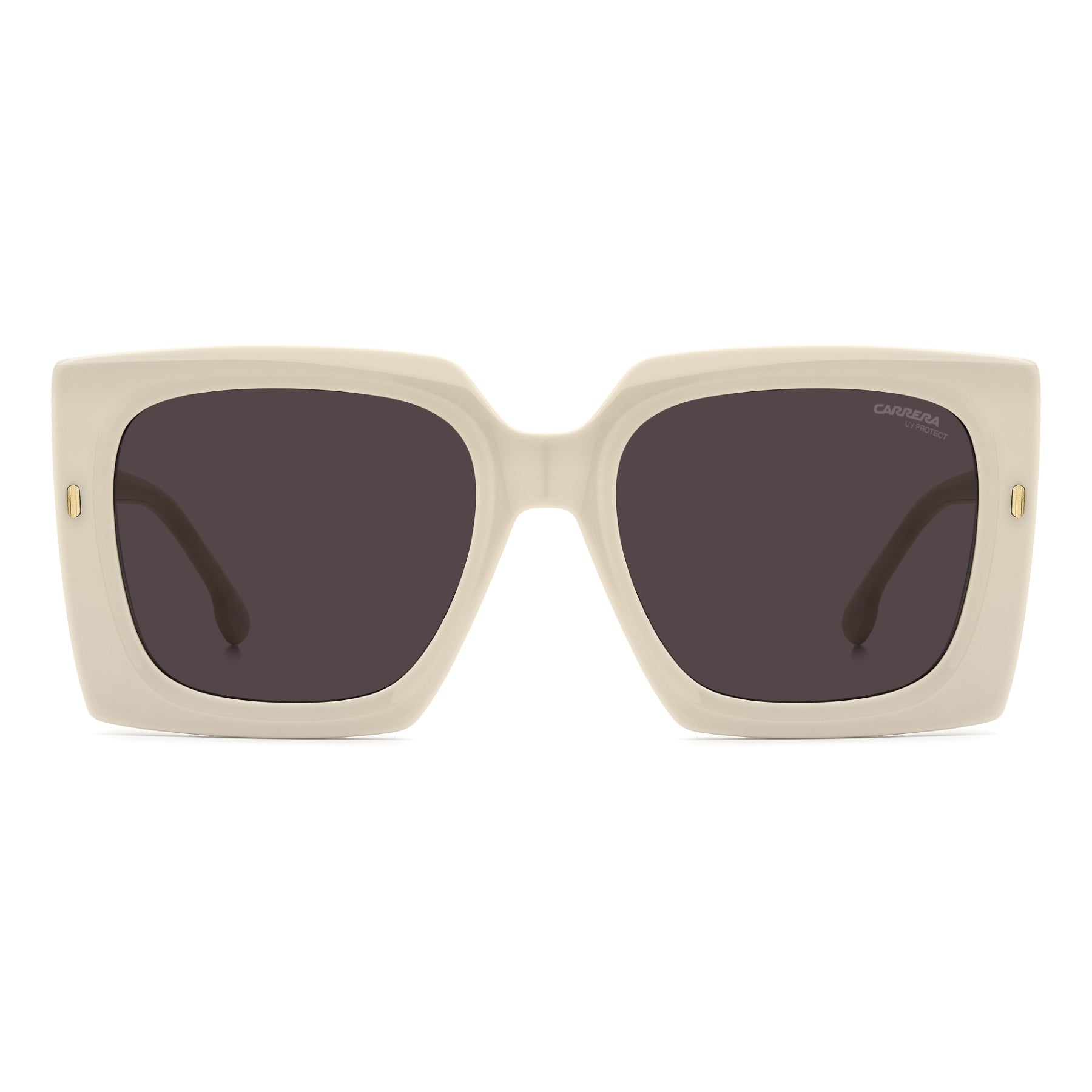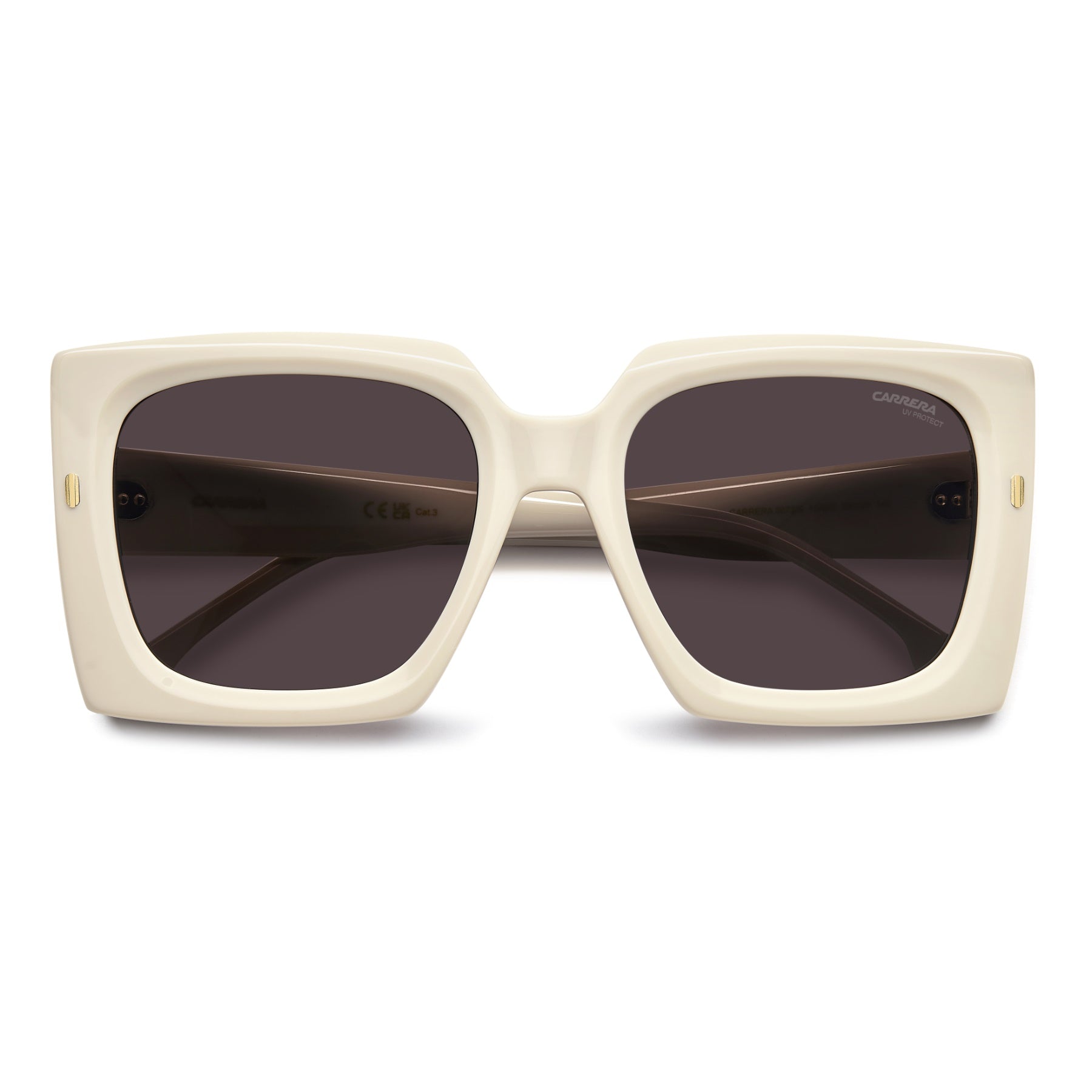 Questi occhiali da sole Carrera esprimono eleganza audace e personalità distintiva. Il frontale a farfalla è oversize, con profili scolpiti e rivetti posti in verticale per una dose extra di carattere. Sulle aste si nota la C in rilievo, simbolo del brand. In versione trasparente o havana colorata, in ogni caso certezza di stile inimitabile Carrera.