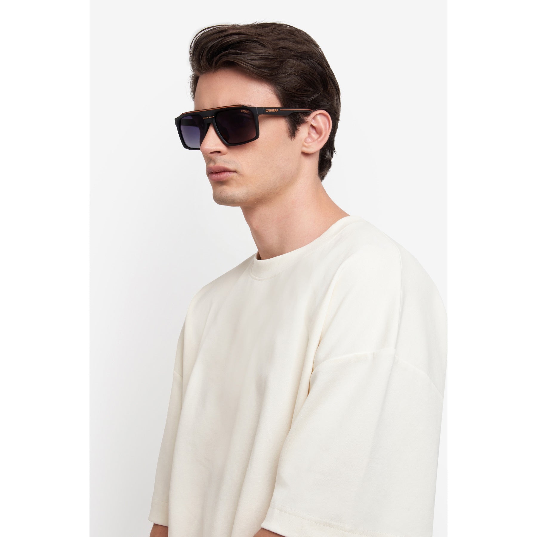 Richiami al mondo active, look audace tipico Carrera: questi occhiali da sole sono semplicemente perfetti. Fedele al suo stile, il brand propone frontale con flat-top e la flag orizzontale con l’iconica “C”. Oltre l’estetica c’è il comfort dei naselli gommati e la possibilità di montare lenti da sole graduate. Le aste sono dritte - per favorire la calzata sotto il casco - stabili grazie terminali curvati e cerniere autobloccanti.